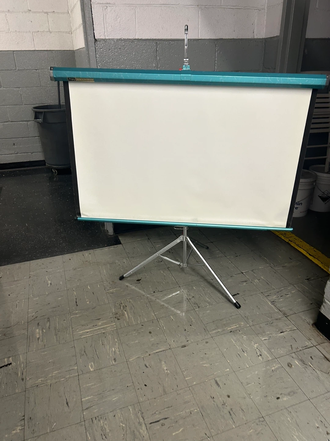 Selling a Da-Lite portable tripod projector screen. It's in good condition and ready for your presentations or movie nights! The screen pulls up easily and the tripod is sturdy