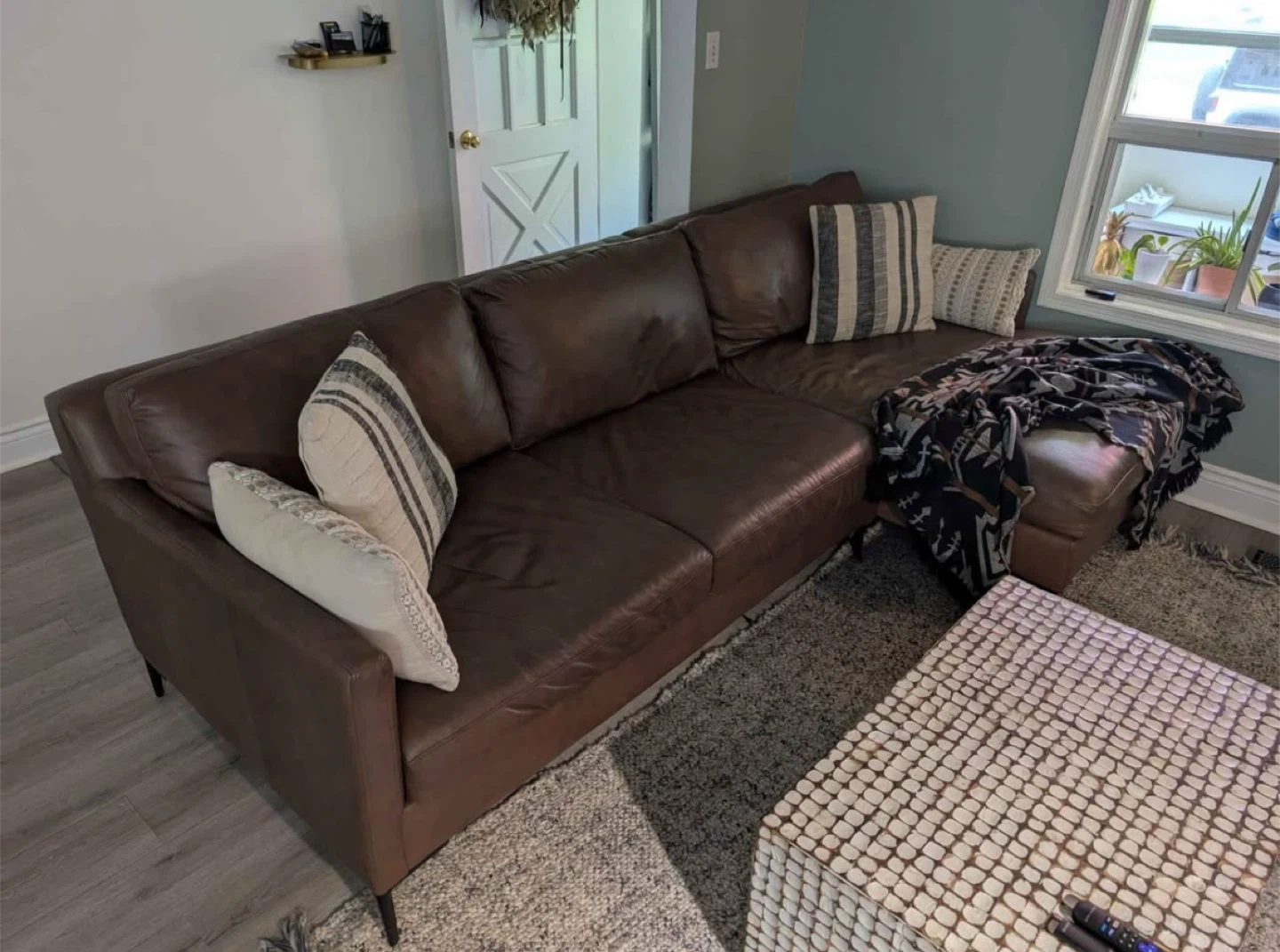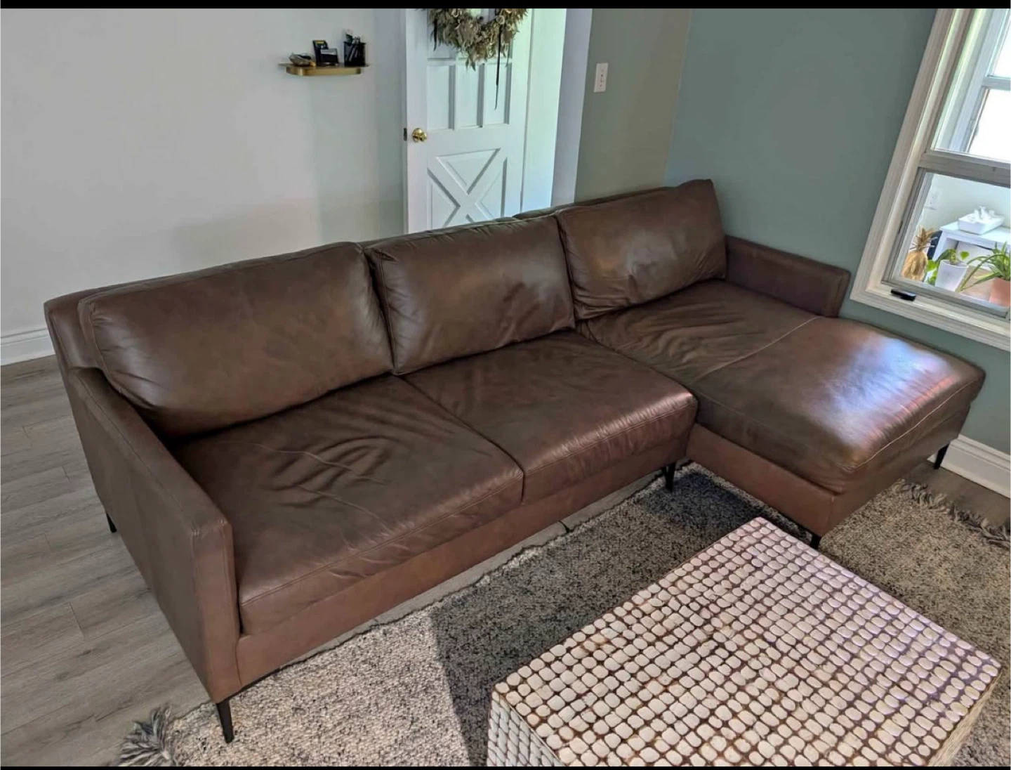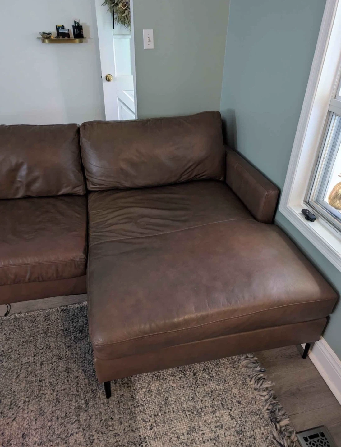 Extremely comfortable genuine leather sofa. Excellent condition, no scratches, tears or stains on leather. Model is the Kennedy sectional sofa from the now closed down Noa Home. Original cost was $5k.