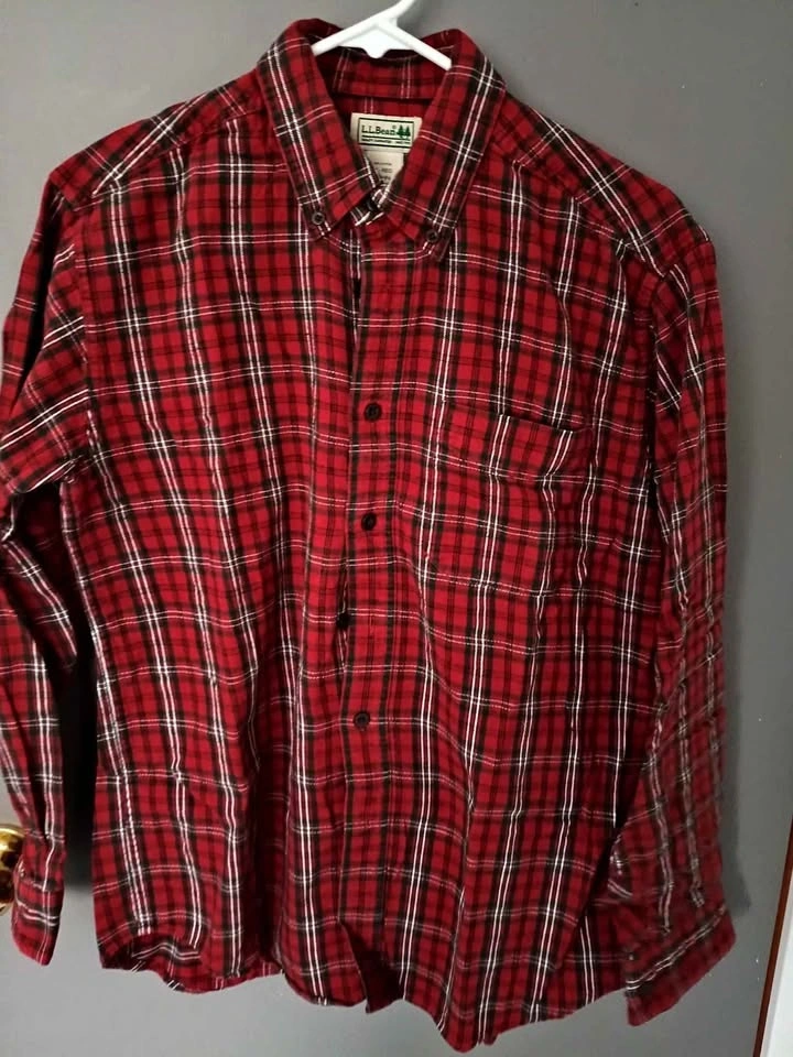 Soft Flannel. Button-down collar and single patch pocket. Size Medium. Traditional fit. Regular price online C$79. 3 different colours available. See photos. Cash only. Price firm Cornwall and Trafalgar in Oakville. Yes, they're available.