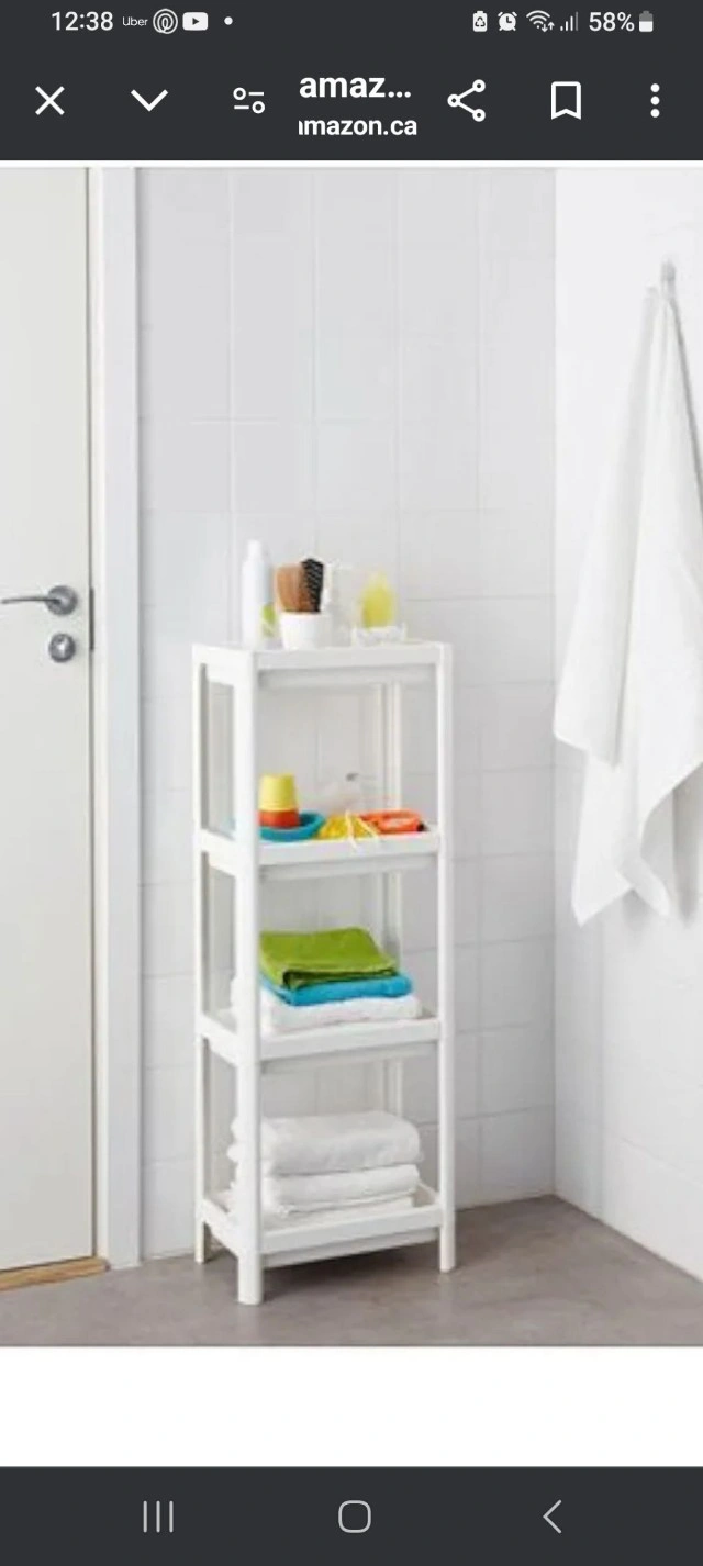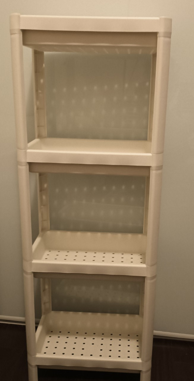 Here's a handy 4-tier shelf unit, perfect for organizing your space! It's made of durable white plastic and is easy to assemble. Great for bathrooms, closets, or anywhere you need a little extra storage