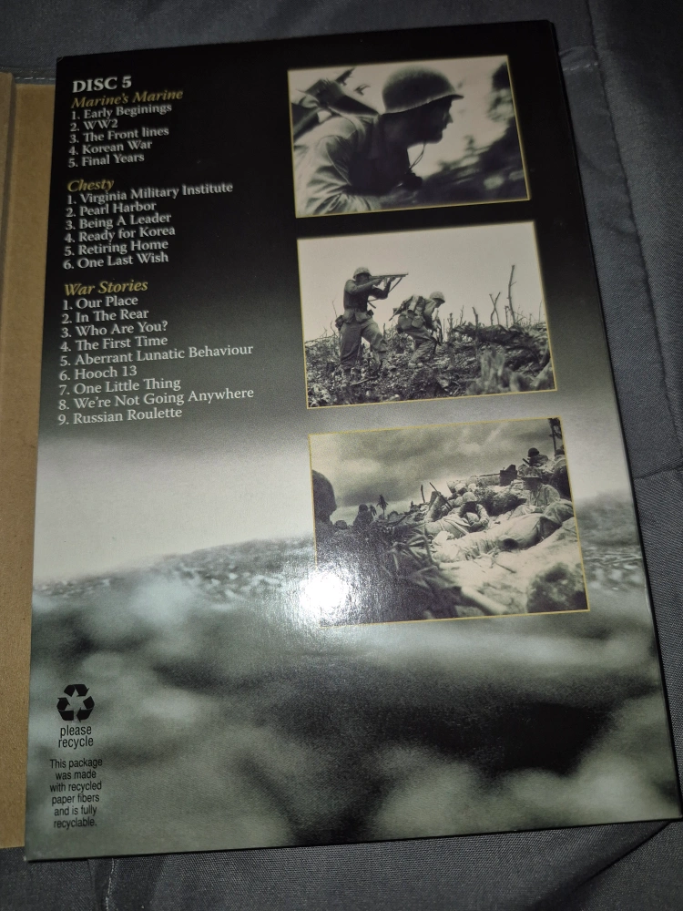 Selling a Pacific Warriors DVD collection. It comes in a metal case and includes 5 discs with various episodes. Great for any WWII history buff!