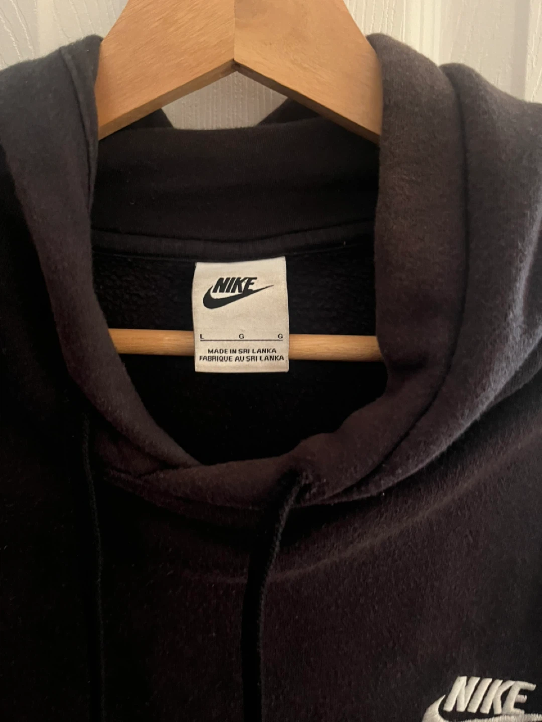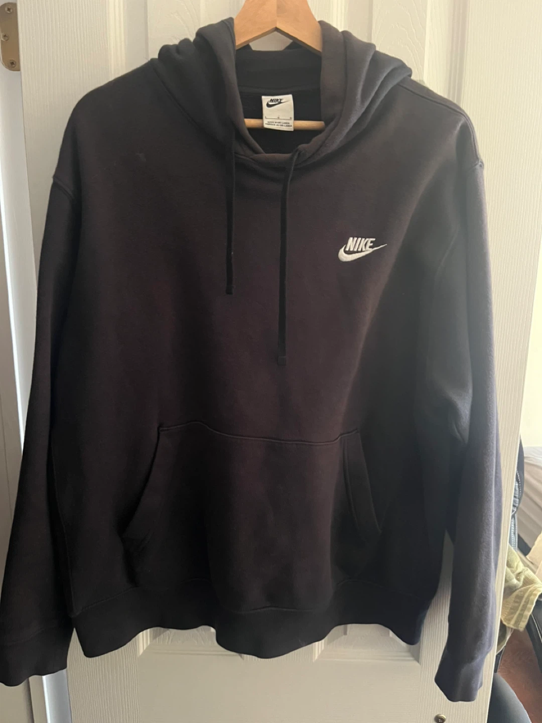 Selling a black Nike hoodie in size large. It's in great shape and super comfy! Perfect for throwing on during those cooler evenings.