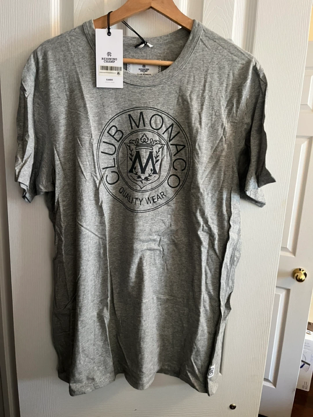 Selling a Reigning Champ for Club Monaco T-shirt in size Large! This classic athletic wear piece is in great condition and ready for a new home. It's a stylish and comfortable addition to any wardrobe