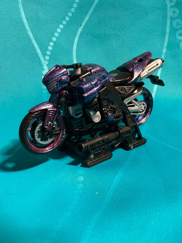 Transformers Revenge of the Fallen Chromia motorcycle character. Includes backer card, instructions and weapon/stand. Also has missile - not shown. Has been painted up with markers by my son but I think it gives it a better look than the original. Feel free to message if you have any questions!