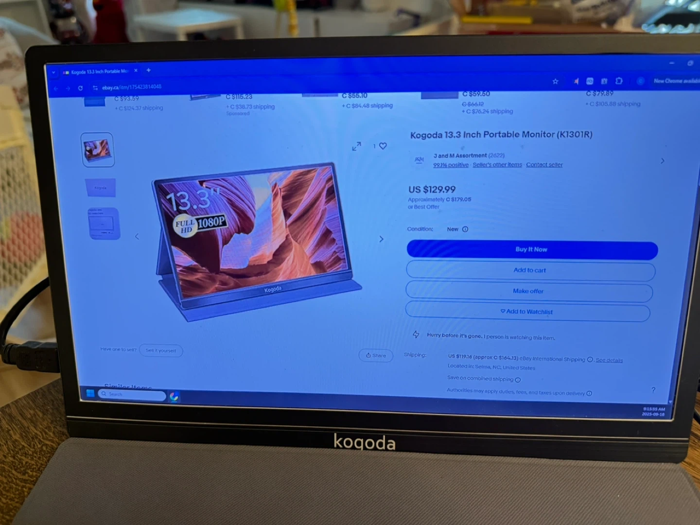 Selling a Kogoda 13.3 inch portable monitor. It's a great portable monitor with a 13.3-inch screen and Full HD 1080P resolution. It has a USB-C type connector. It's lightweight and portable, perfect for on-the-go use! Condition is almost new I only used handful of times past 8 months. I recently bought a bigger size no longer need it. Have all the cables. Mouse not included.