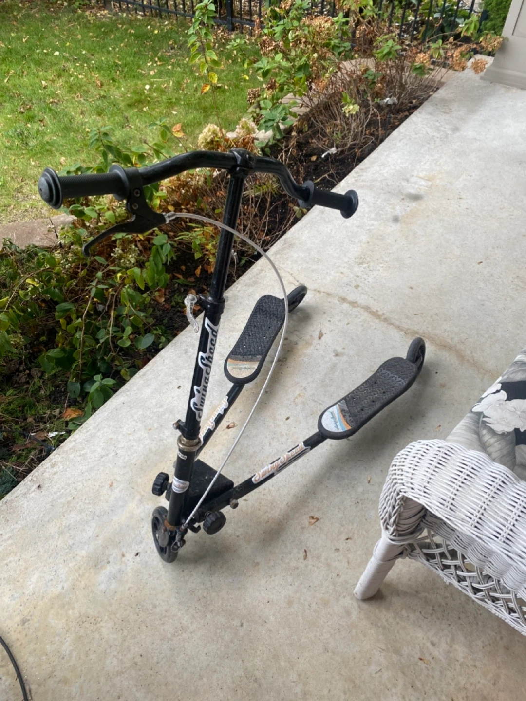 Selling a Used Swing Speed scooter. It's black and has two foot platforms. Great for some outdoor fun!