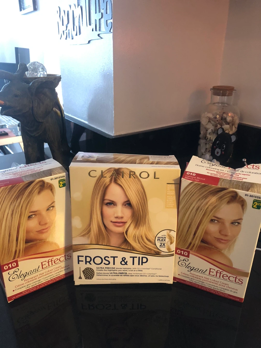 FREE One Clairol highlights kit(missing hat and gloves but all solutions there) and 2 Elegant effects permanent Color cream