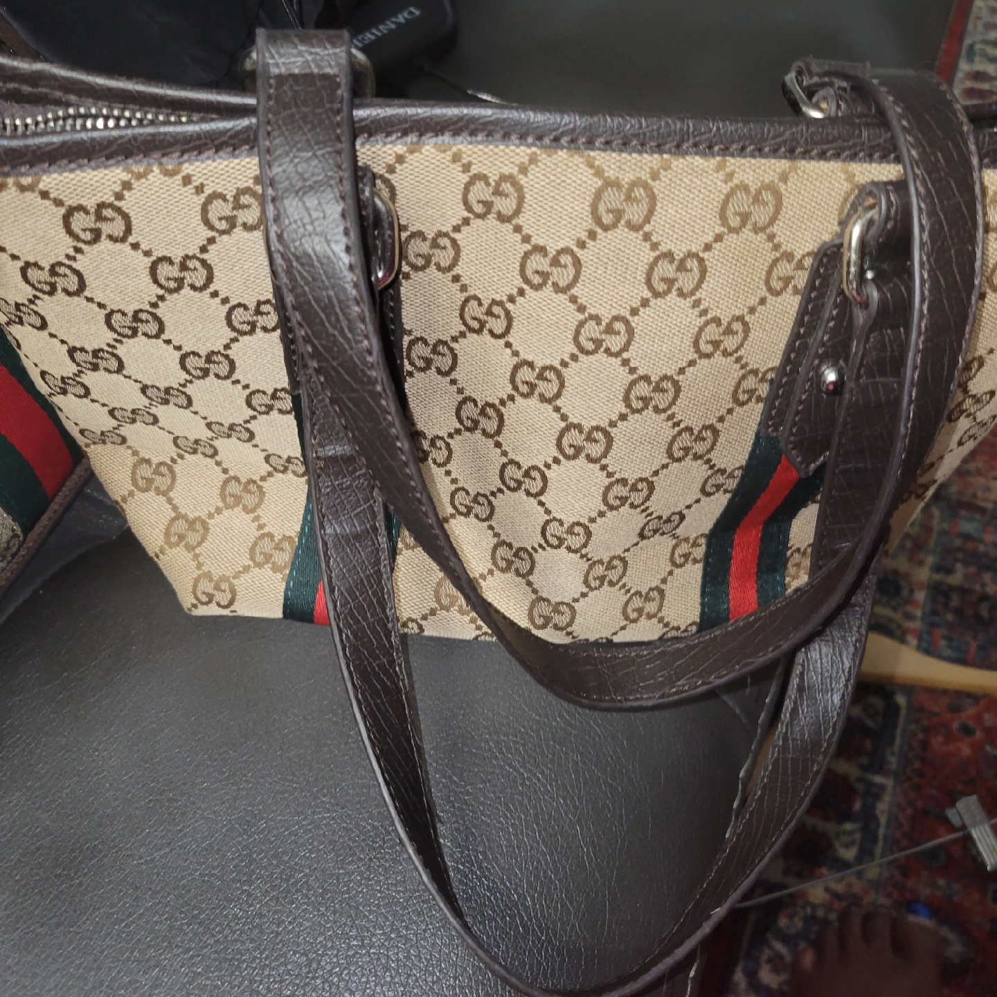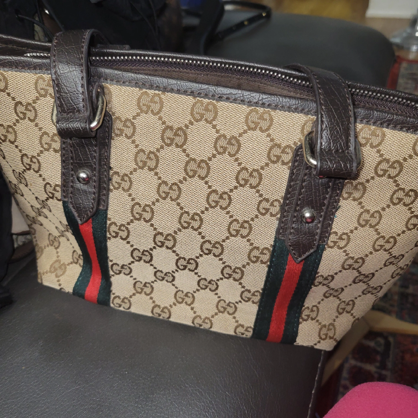 Selling a cute Gucci handbag. It has the classic Gucci pattern with the red and green stripe. It's in great condition and perfect for everyday use