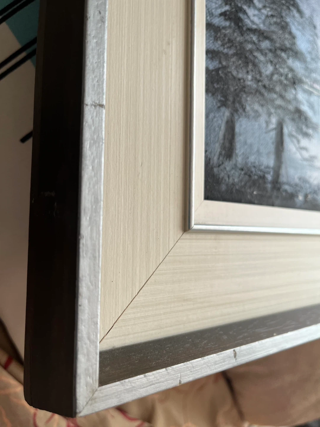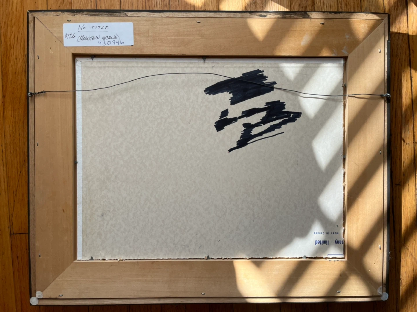 Excited to be offering an early piece by a now very successful contemporary landscape painter Jonn Einerssen. I estimate by the materials that it was painted in about the 1980’s. It’s signed Jann, the European way of saying, signing his name (conjecture). Photos #6 (and detail #7) is a snapshot from the ‘net illustrating his distinctive signature and the value of his pieces. This one is no doubt undervalued at this price; a very lucky find on my part. Photo #9 illustrates the vintage nature of the present frame. It would look even lovelier in a new custom frame! Photo # 10 is his bio, borrowed from the Art Country Canada website.