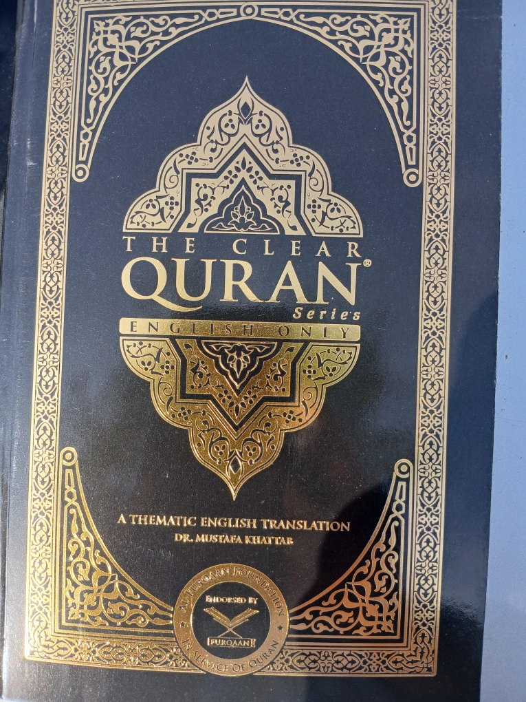 Selling 'The Clear Quran' from the English Only Series. It's a thematic English translation by Dr. Mustafa Khattab. This book is endorsed by Al-Furqaan Foundation. Great for anyone interested in a clear and accessible translation of the Quran