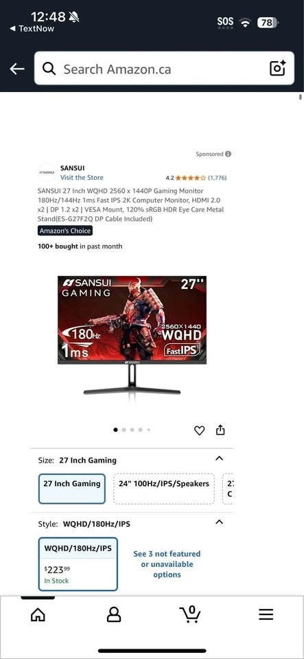 PRICE IS FIRM! They are brand new in box (12 month warranty) Selling a few SANSUI 27 Inch WQHD 2560 x 1440P Gaming Monitor 180Hz and 1ms response time they sell for 225+tax The one in photos is mine it’s not being sold as I’m using it, I have a few I bought for cousins. there is a a deal buy two for 360+tax but they don’t need the monitors Even on Amazon paying retail price these monitors are crazy good value for what you get, over 1500 reviews and thousands bought from Amazon Im selling for even a cheaper price there is no way you can find a better deal fir these specs Perfect for pairing with gaming pc or PlayStation 5 and more! Message any questions, thanks