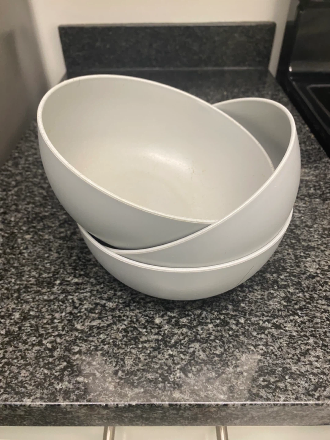 Selling a set of three grey nesting bowls. They're in great shape and perfect for arts and crafts. There are a few scratches in them so best to be used for crafts not food!