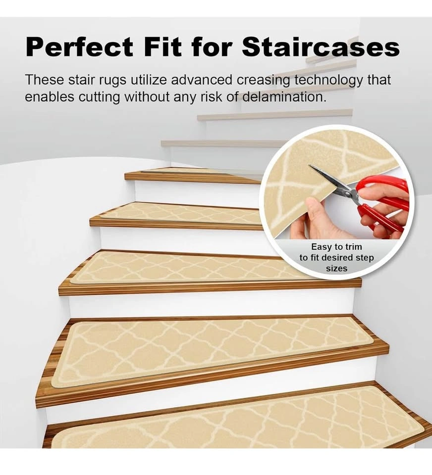 Carpet Stair Treads Non Slip Indoor, 15 Packs 30X8in Stair Runners for Wooden Steps, Reusable Peel and Stick Stairs Treads Rugs for Kids, Elders, and Dogs, 100% Polyester Surface Staircase Pads, Beige