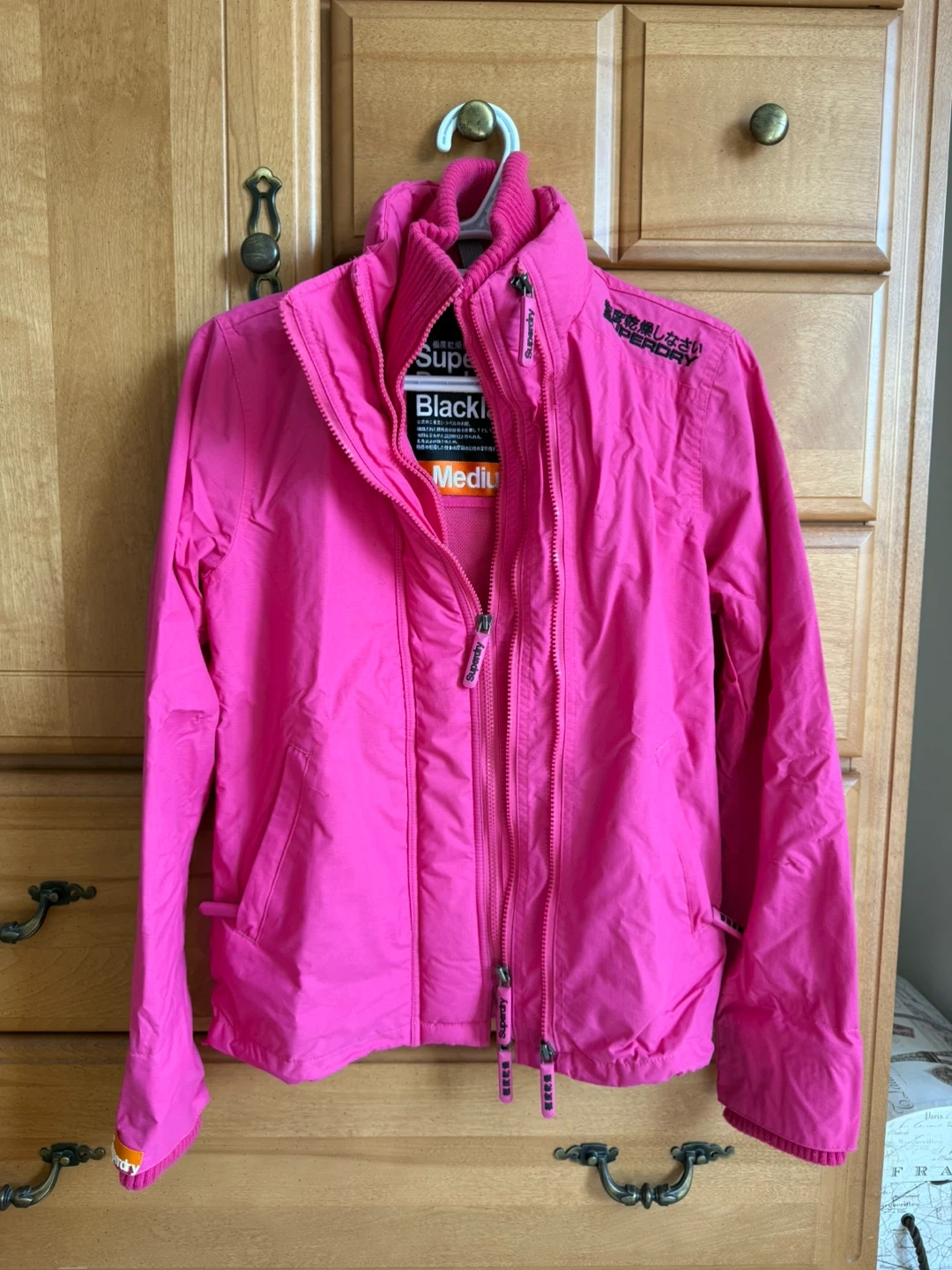Superdry Double Blacklabel jacket in a vibrant pink colour! This jacket is a size medium and features a stylish design. Perfect for adding a pop of colour to your wardrobe! *retailed $180*