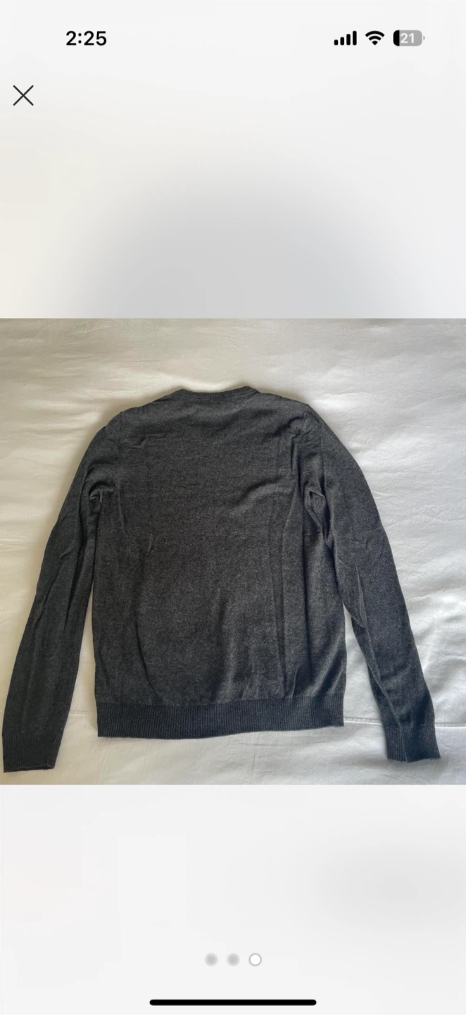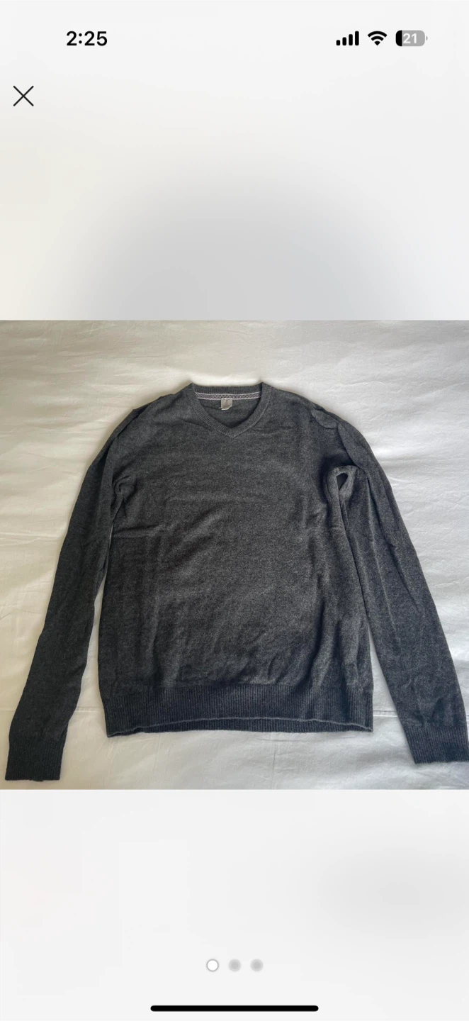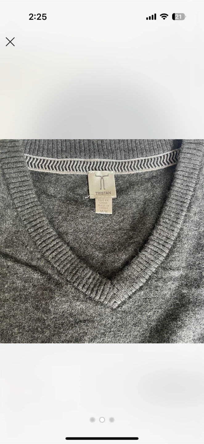 Selling a gently used Tristan V-neck sweater in size M. It's a lovely grey colour and in great condition. Perfect for layering or wearing on its own!