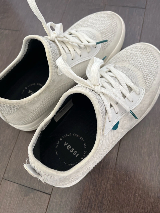 Step into comfort with these Vessi Weekend Sneakers, sized at women's 7/ men's 6! These waterproof wonders are perfect for those rainy day dashes or just adding a touch of sporty chic to your outfit. These are previously owned, so you may notice some wear. They're ready for new adventures and new feet! * Size: Women's 7 / Men's 6 * Brand: Vessi * Model: Weekend Sneaker * Colour: White If the ad's still up, the shoes are still available! ( WATERPROOF )
