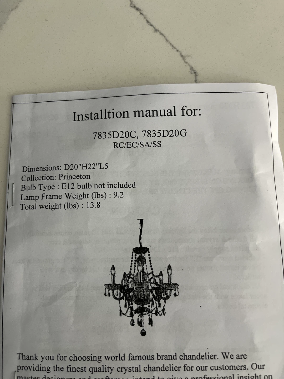 Crystal Chandelier 5 lights