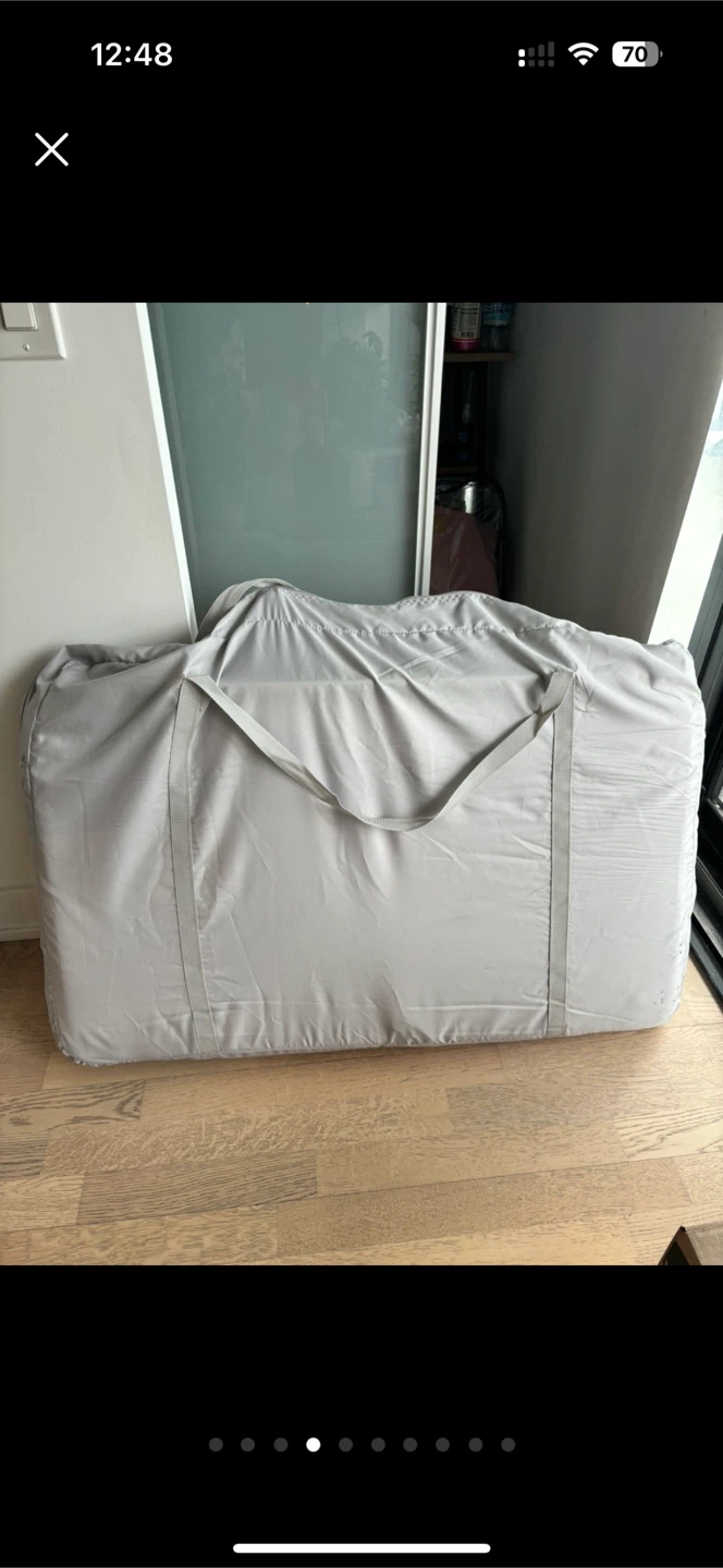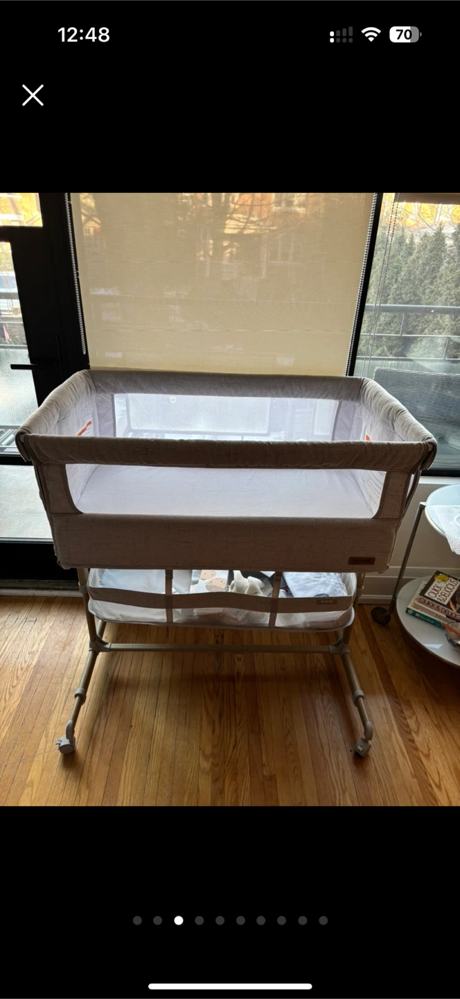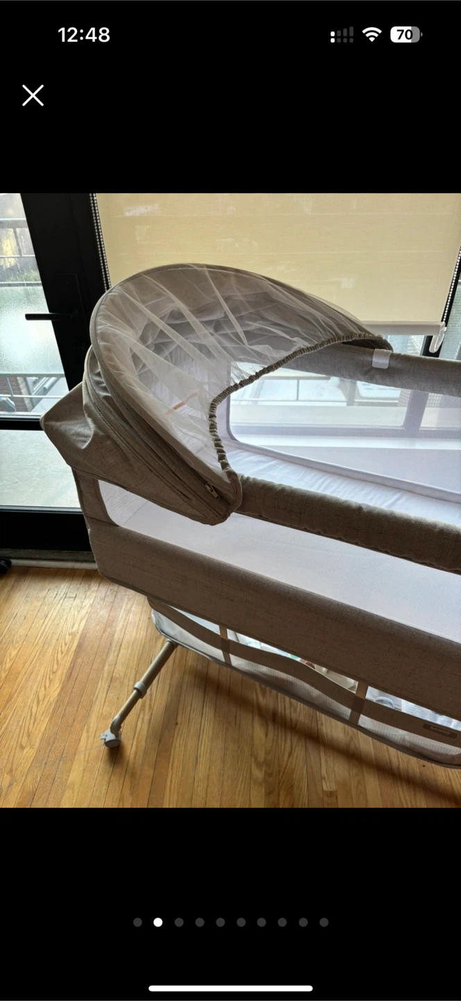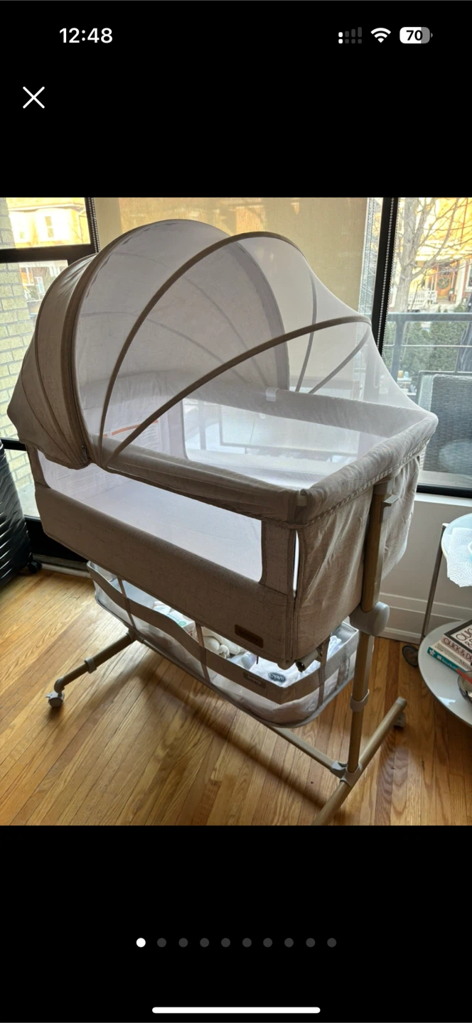 In great condition. Used only for 4 months. Sturdy, convenient, and great quality! https://a.co/d/2kWBZdD Inclusions: bassinet, breathable net (detachable), mattress, instruction manual The bassinet has been disassembled and stored in its travel bag (please see photos).