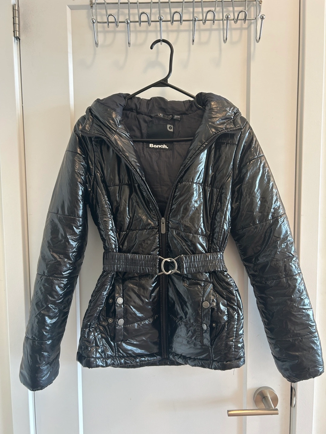 Size S Bench black puffer jacket *Rarely Used* in great condition! It has a belt around the waist and a hood,its stylish, perfect for the ❄️🎿