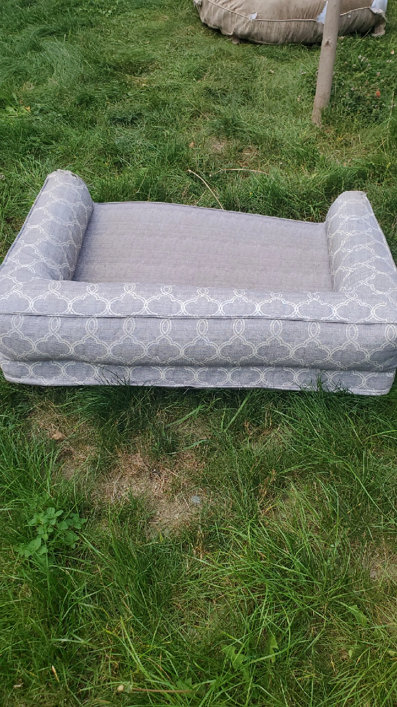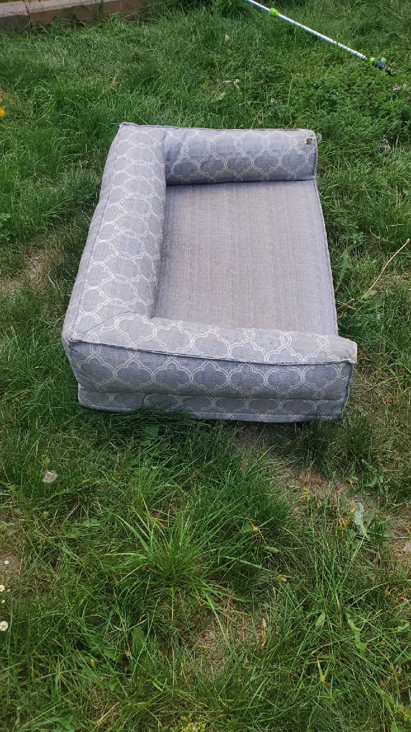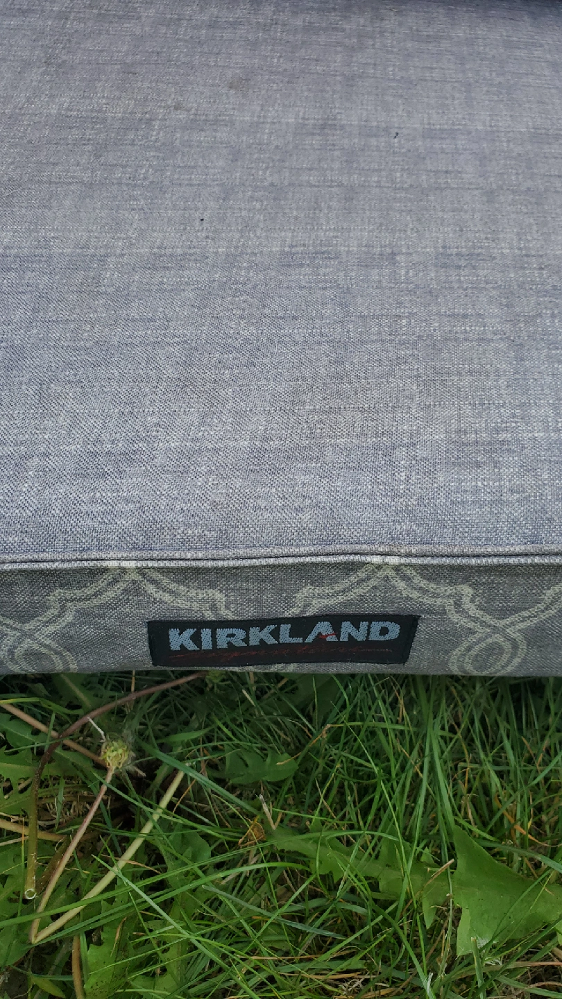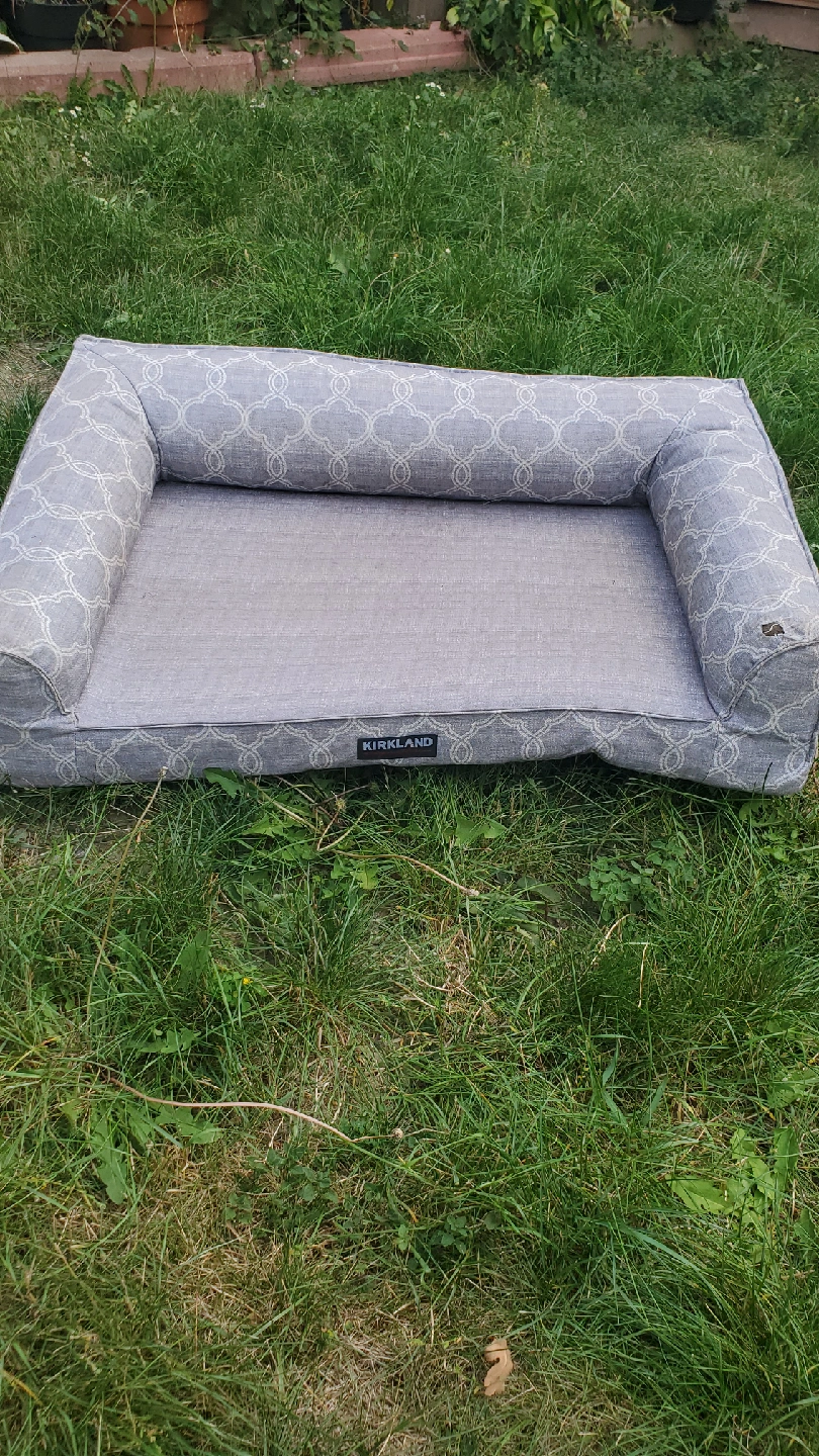 Comfortable Kirkland Signature dog bed, perfect for your furry friend! It has a grey colour and is in good condition. There are some signs of use as seen in the pictures