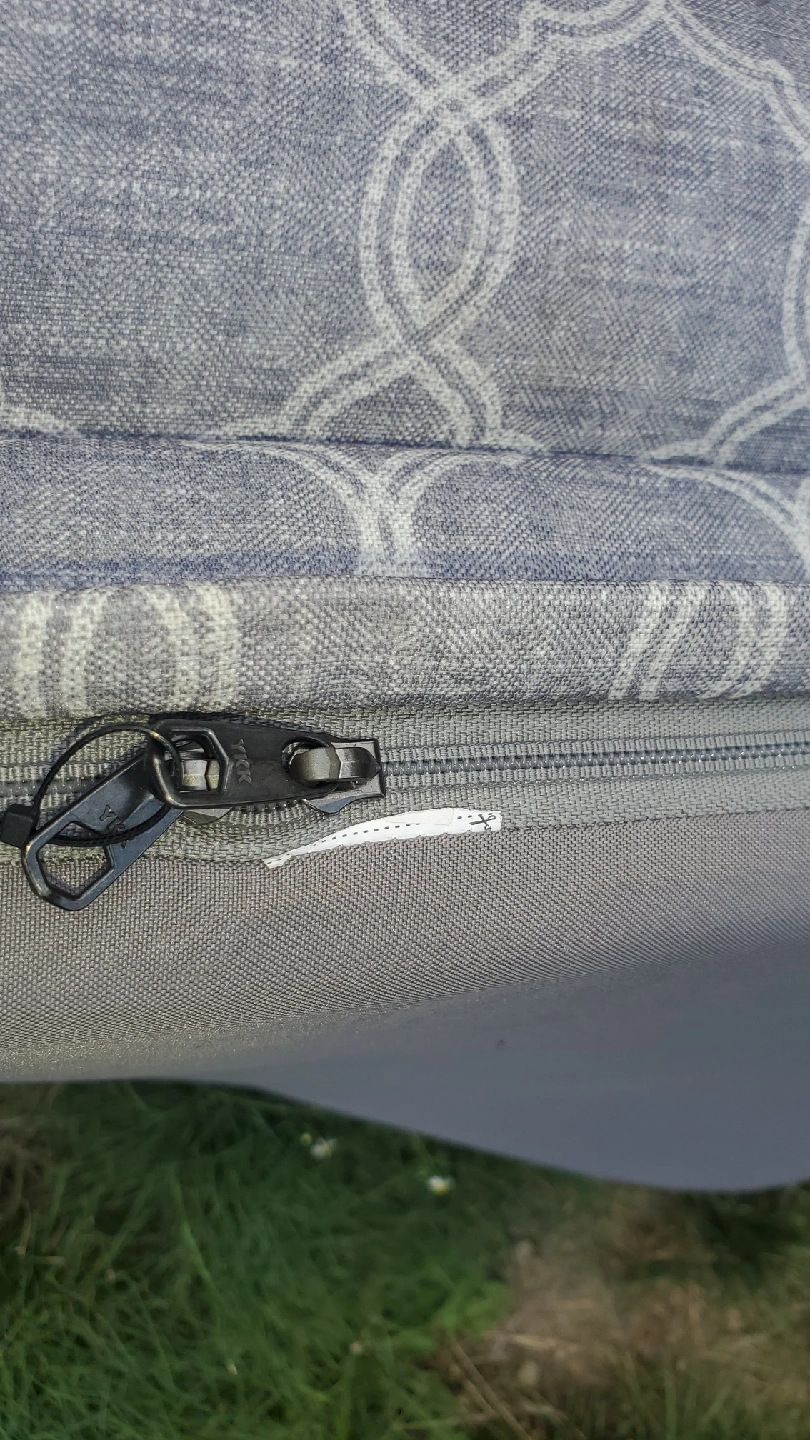 There us a zipper to change cover if interested. The inner mattress is not damaged.