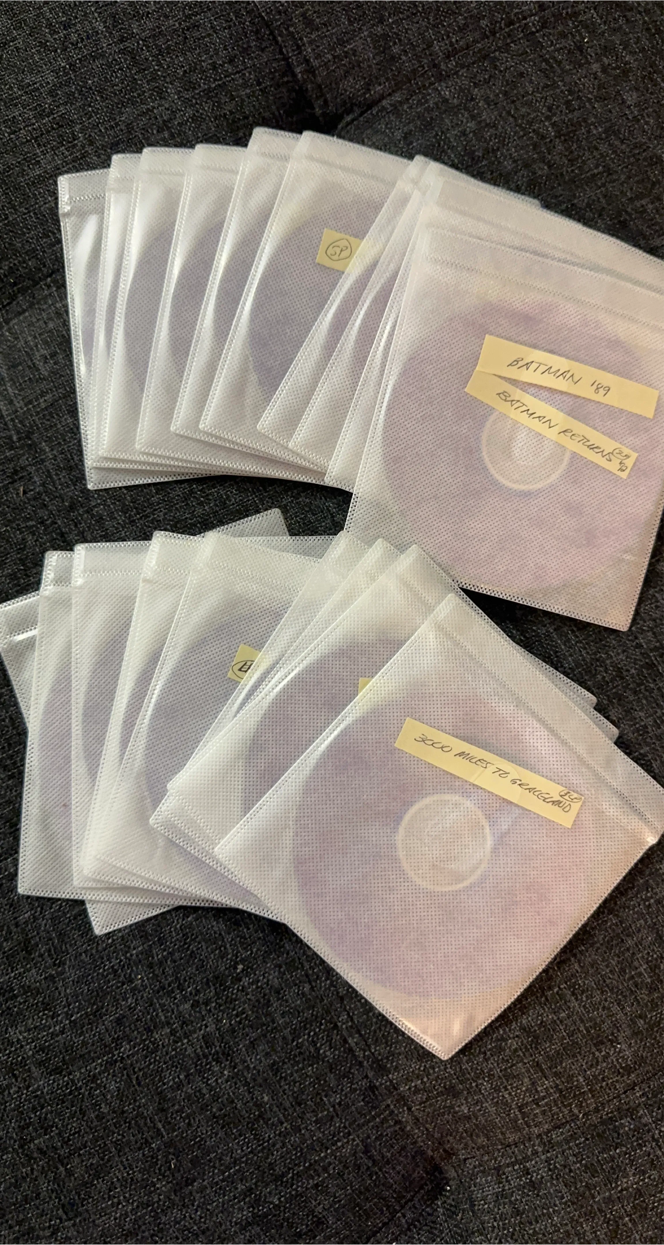 98 recoded movies on DVD’s all in there own protective sleeves. Some have 2 movies on it for sequels eg: Jaws and Jaws 2