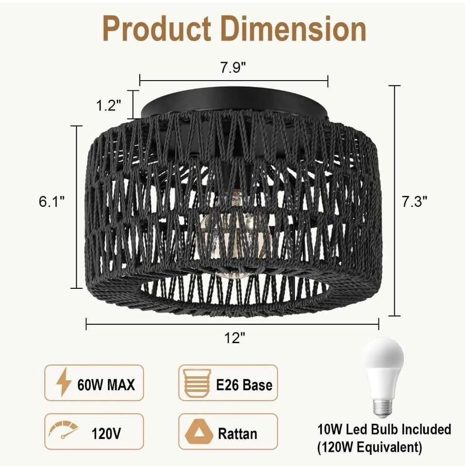 Boho light fixtures package includes all mounting hardware. The wicker light fixture installation is really simple with step-by-step instructions.