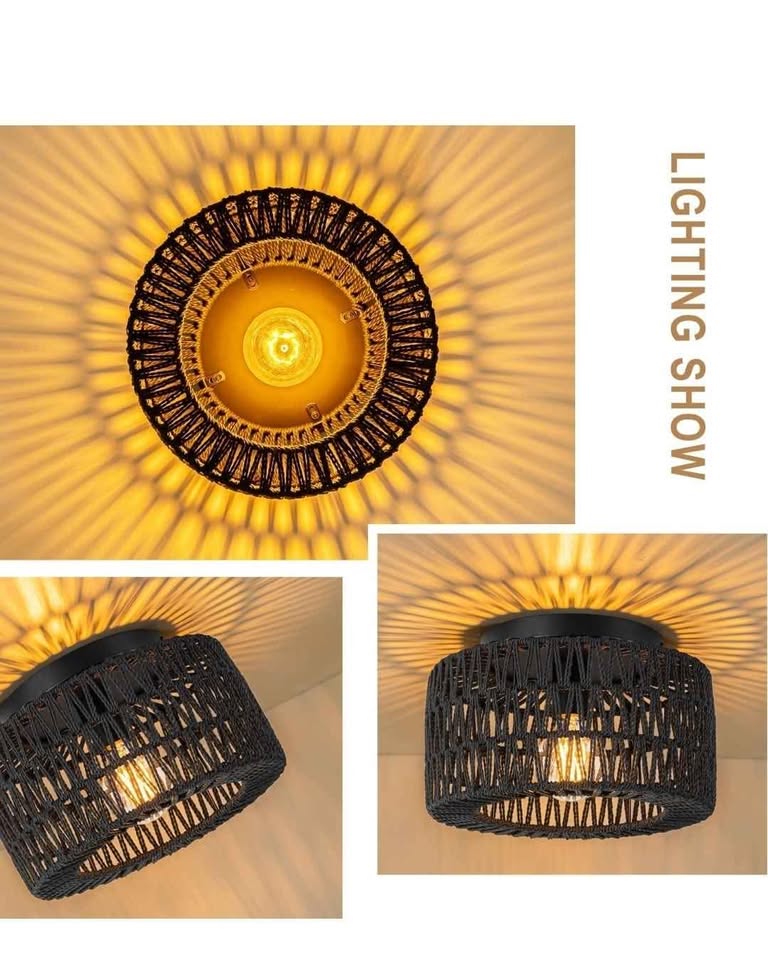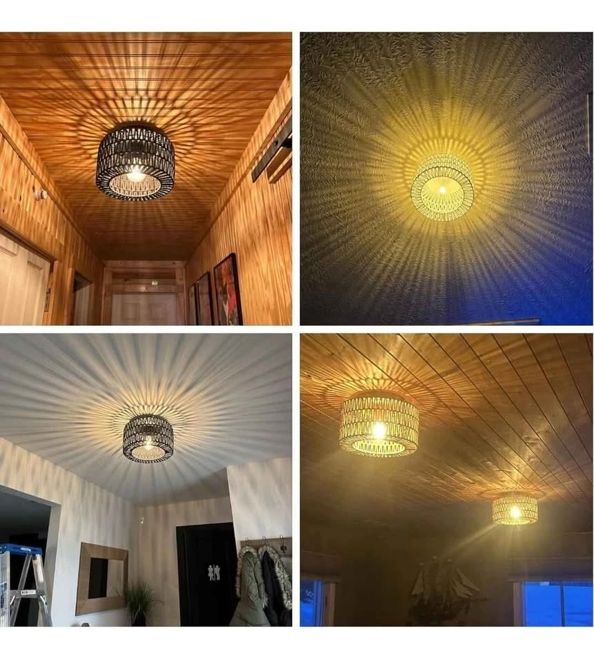 The rattan light fixture ceiling is crafted from woven natural rattan and creates a boho atmosphere for your room!
