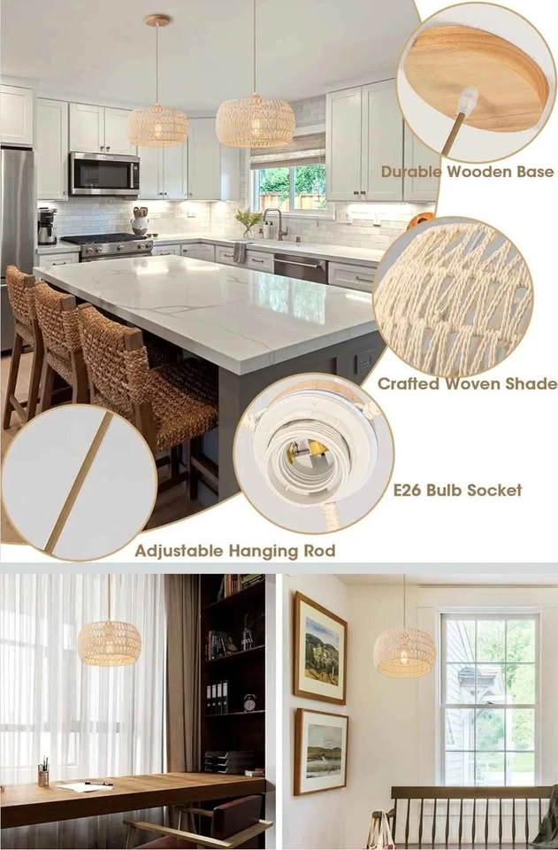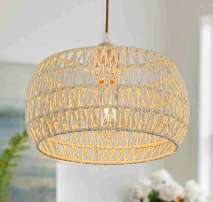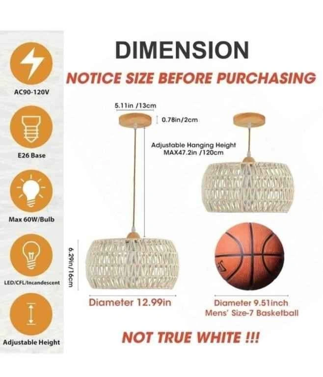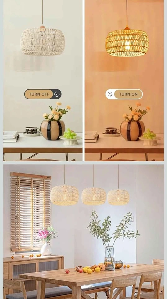 Cream White Rattan Pendant Light Fixture Boho Ceiling Light