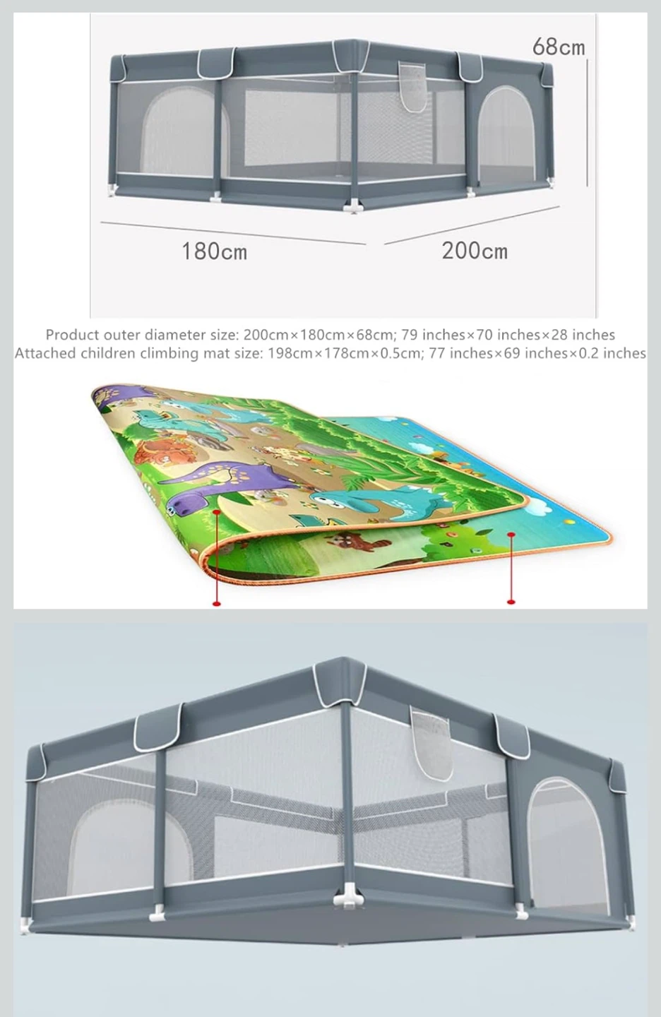 Dimensions are approximately 200cm x 180cm x 68cm, or 79 inches x 70 inches x 28 inches.