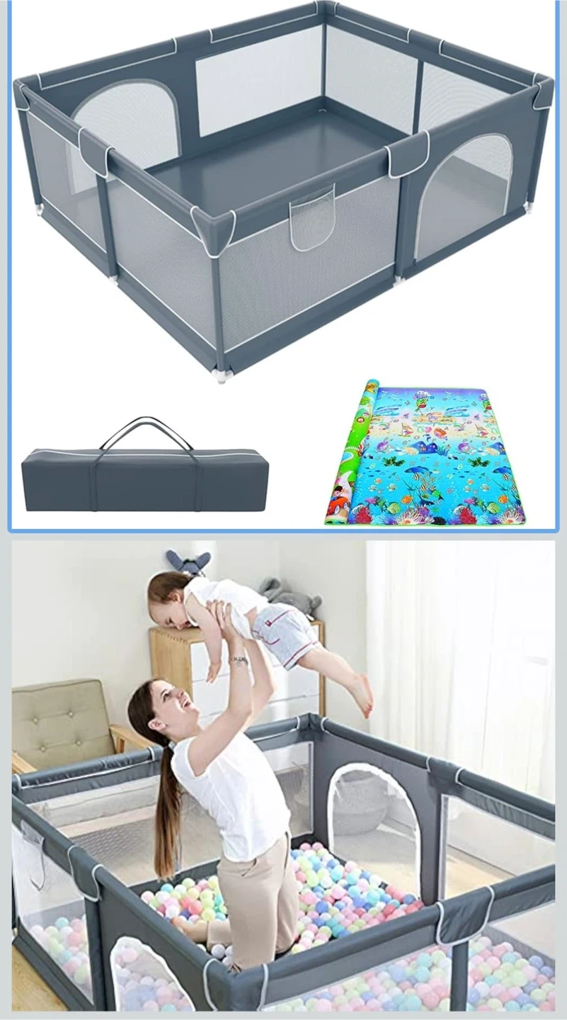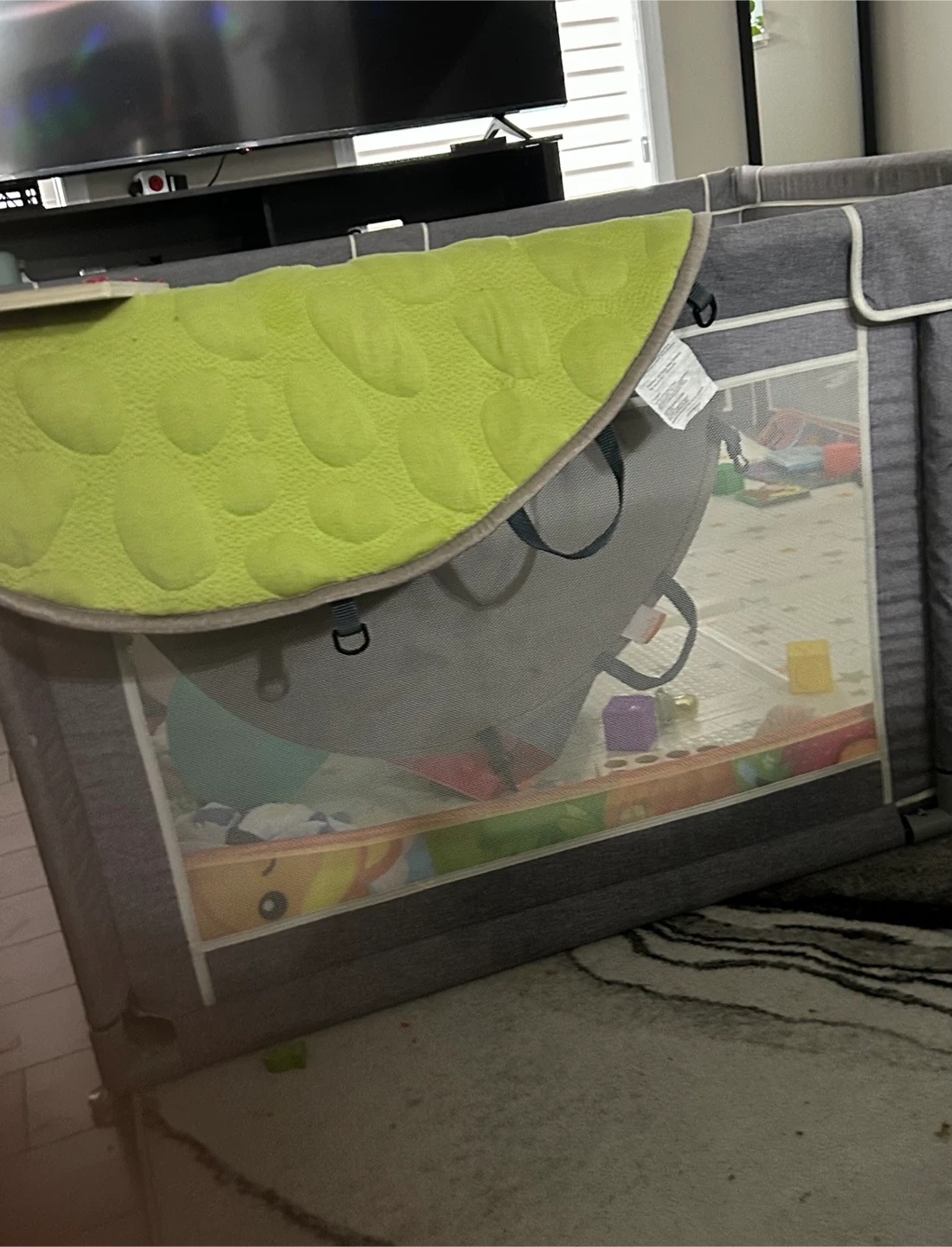 Selling a grey baby playpen in great condition! It comes with a colourful play mat to keep your little one entertained. The playpen is spacious and provides a safe area for your baby to play.