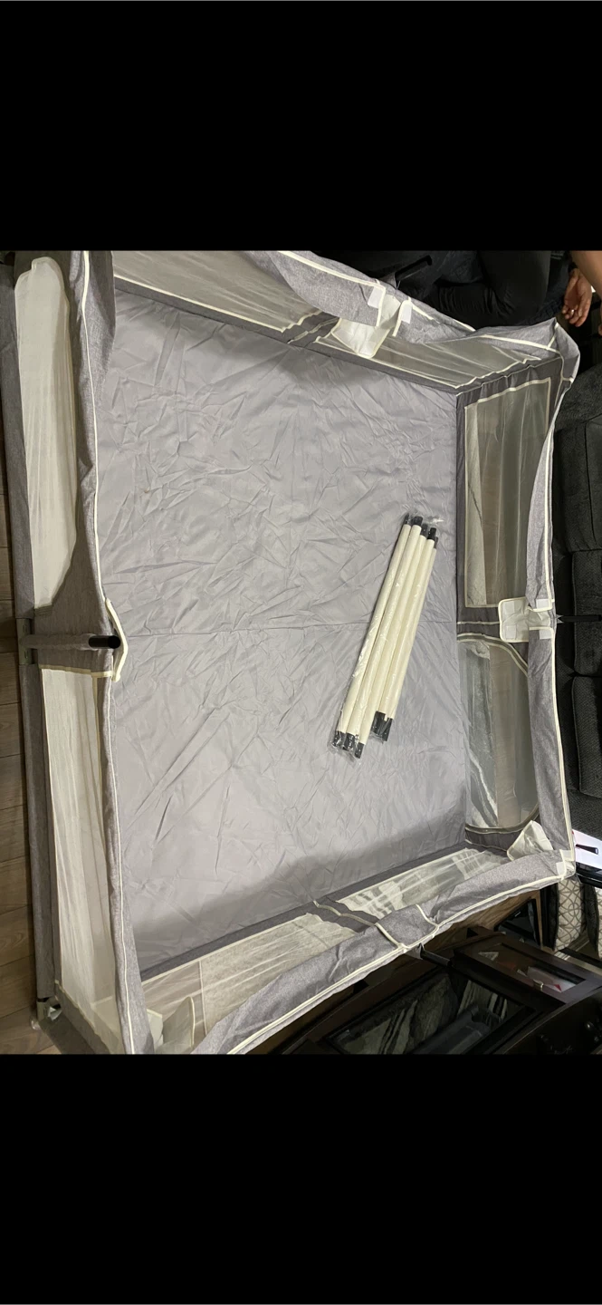 Both zippers are in working condition, pen fabric has been washed and hung to dry. Some foam from the posts are missing but that can be easily replaced or go without as the children will most likely bite it anyway.