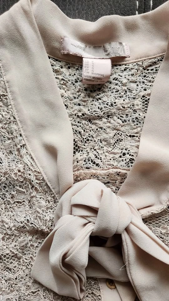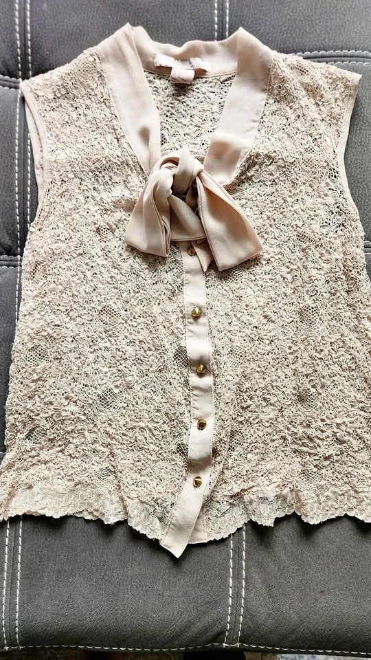 Blush colored top in lace with a tie by the neck. Size: small Pick up at Lawrence and keele