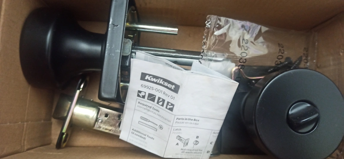 Selling a brand new Kwikset Pismo Round Satin Nickel Bed/Bath Door Knob featuring Microban Antimicrobial Technology with Lock in matte black! It's still in the box with all the original components