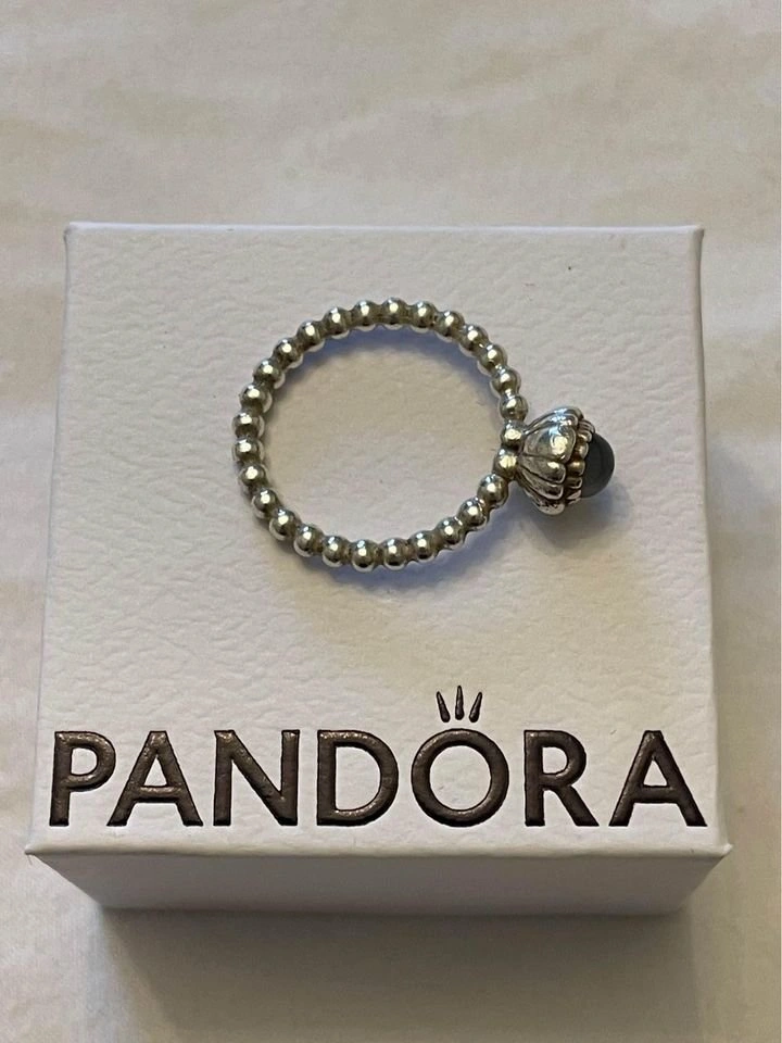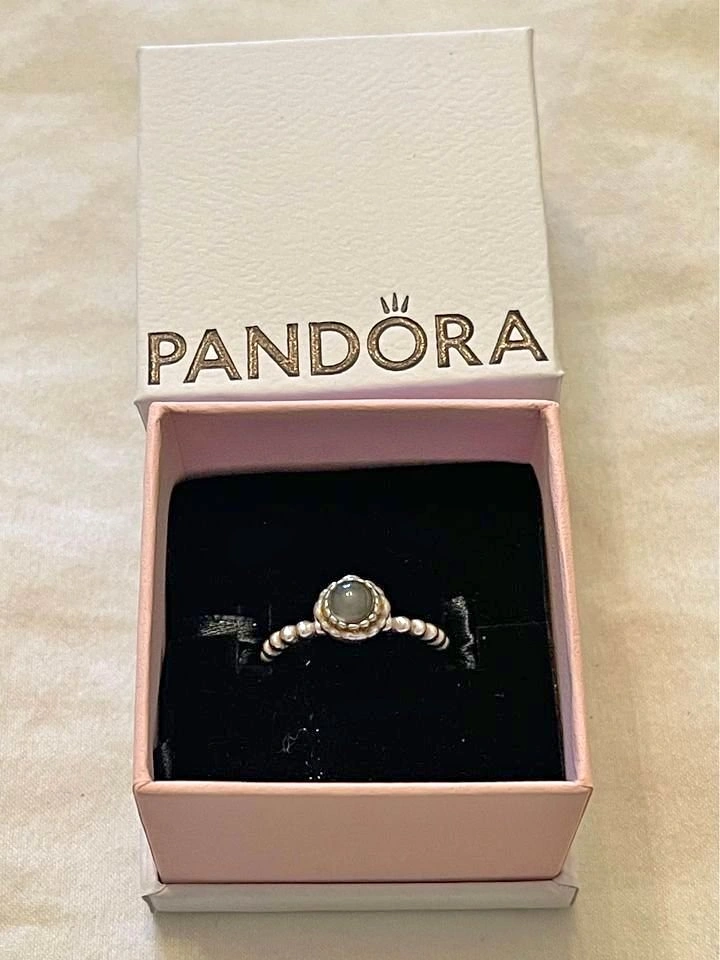 Authentic Pandora Birthday Blooms Ring, size 7, moonstone June