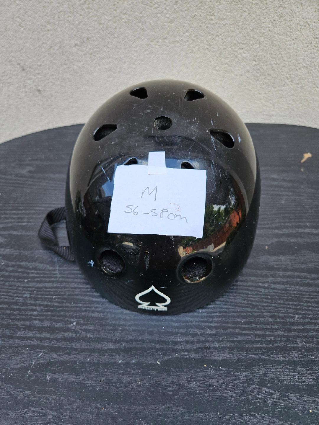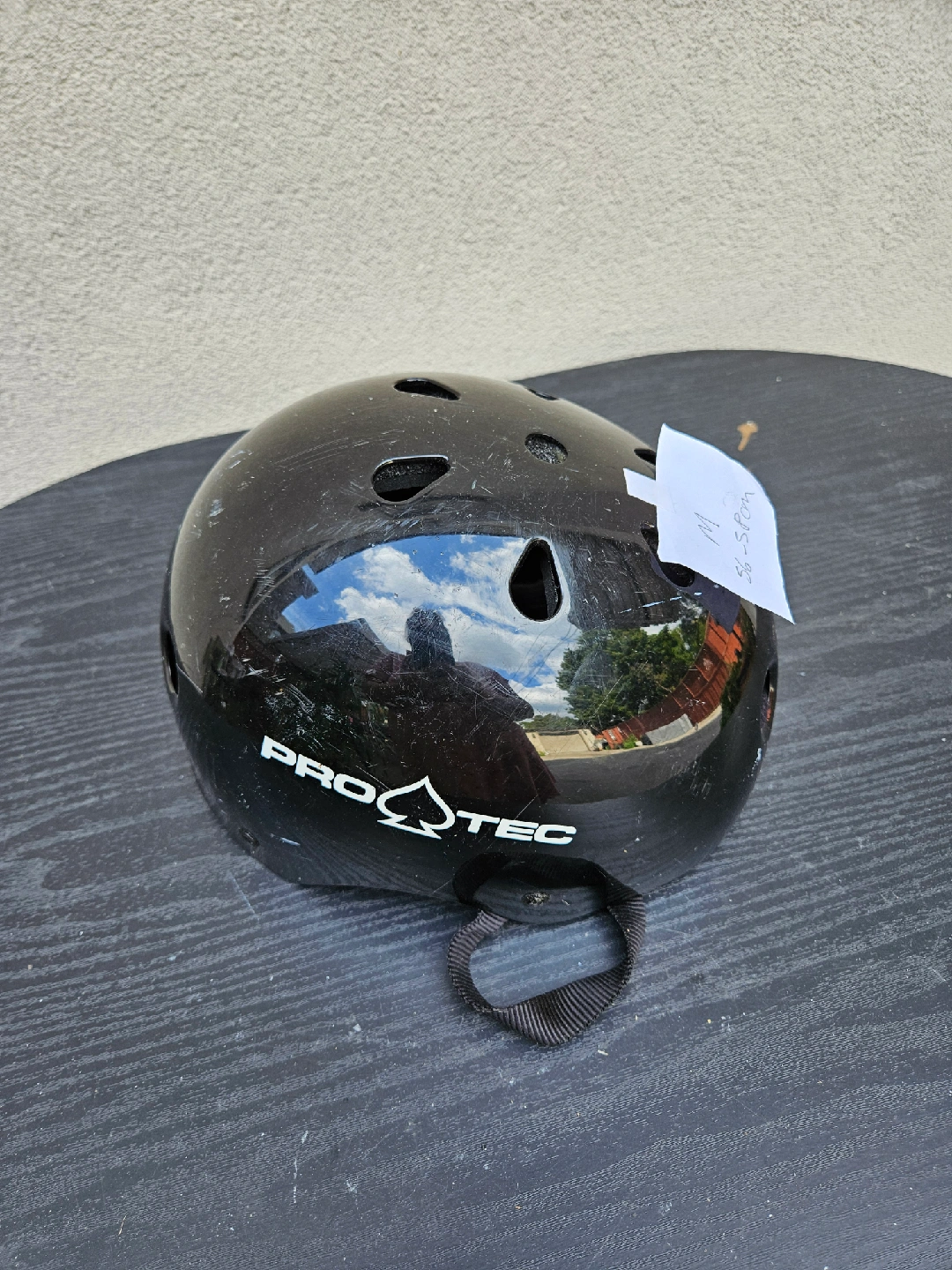 Selling a Pro-Tec helmet in size medium (56-58cm). It's black and has some signs of wear, but still functions perfectly. Great for skateboarding or other action sports!