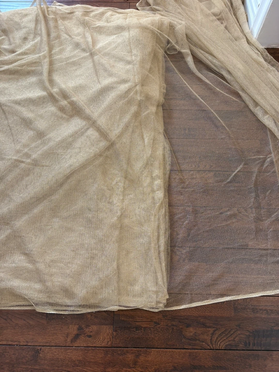 Pic 7/9 Netted/Sheer light gold colour fabric/ New $5 per yard 60” width