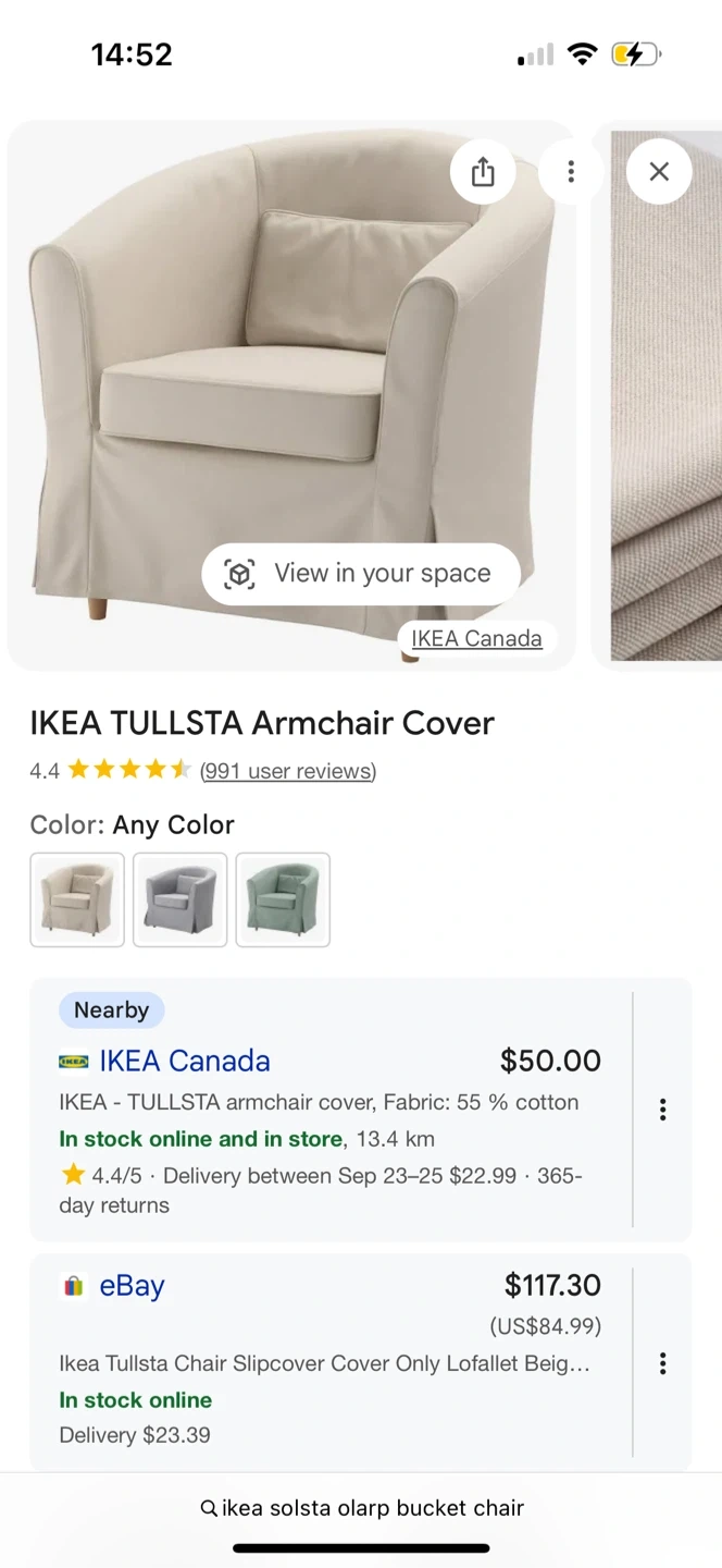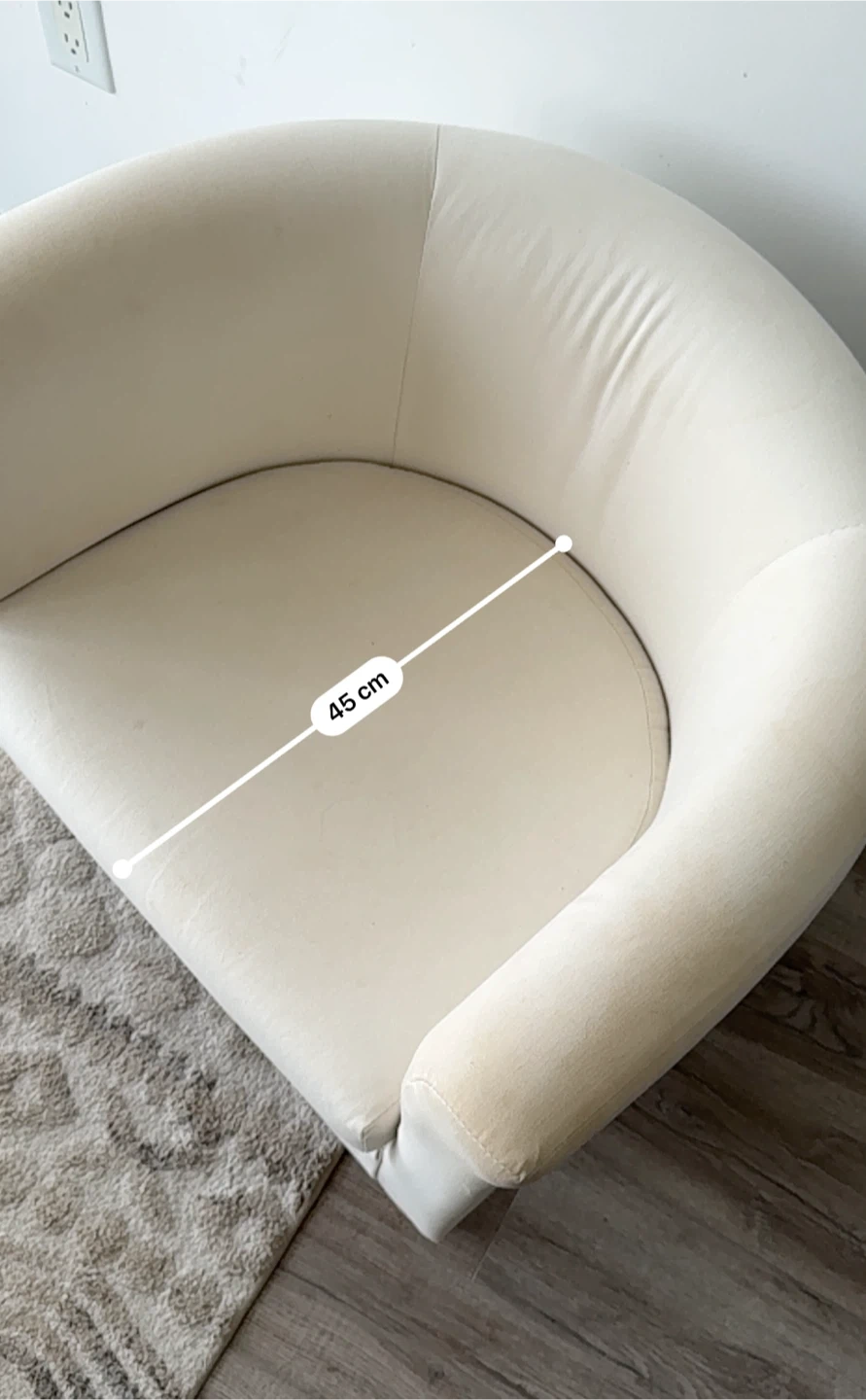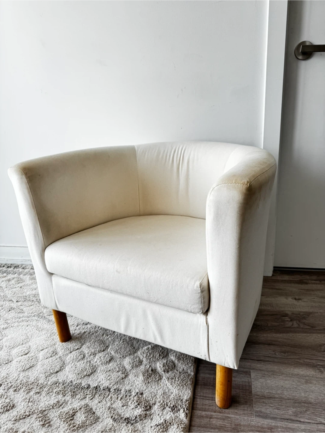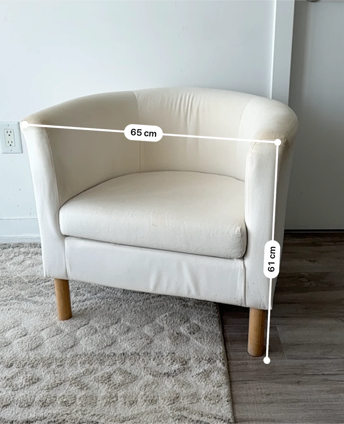 Selling a cream-coloured IKEA TULLSTA armchair (without the cover). This chair with cover would retail for $349 + tax It's a comfy and stylish addition to any room! The dimensions are approximately 65 cm wide, 61 cm high, and the seat is about 45 cm deep. Fair condition with some marks — can buy a new cover for $50 from IKEA.