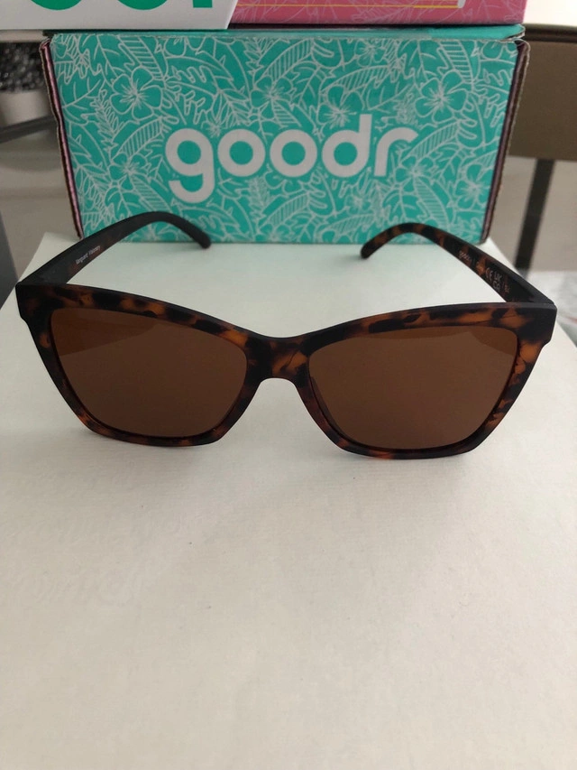 Brand new Goodr “Pop G” model sunglasses in Tortoiseshell. Polarized and lightweight. Never worn, will come with box it was shipped in, and case/cleaning cloth.