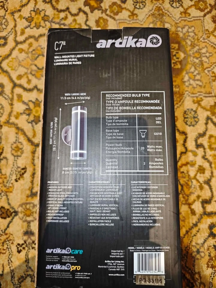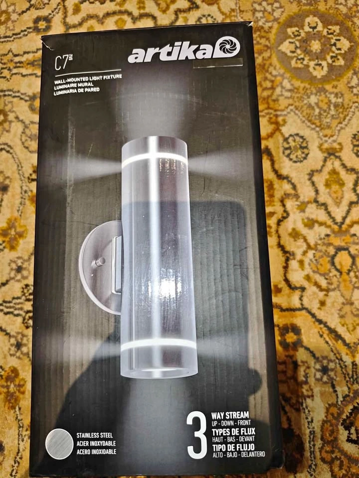 60Artika C7 vertical lighting fixture in stainless steel. Suitable for both outdoor and indoor spaces. It projects light in 3 directions. Rust and weather-resistant. Easy to install. Bulbs not included (GU10). Pick-up in Oakville near Oakville Trafalgar Memorial Hospital, beside Millstone Park. Postcode: L6M 0H1. Let me know if you're interested!