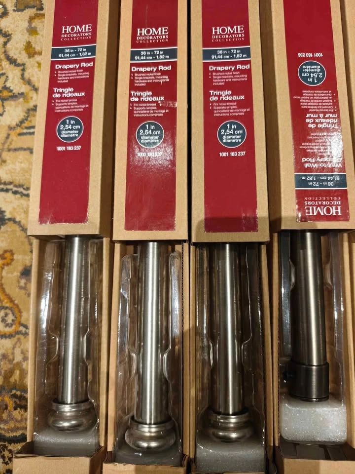 Home Decorations Collection Brushed Nickel pole can be adjusted to length 36-72 inches. Sturdy metal construction for safe hanging of your window treatments. Complements a variety of classic and transitional décor styles. Pick-up location: Oakville (near Oakville Trafalgar Memorial Hospital, beside Millstone Park). Postcode: L6M 0H1. Complements a variety of décor styles. Length 36-72 inches. Solid metal construction. 1" diameter.