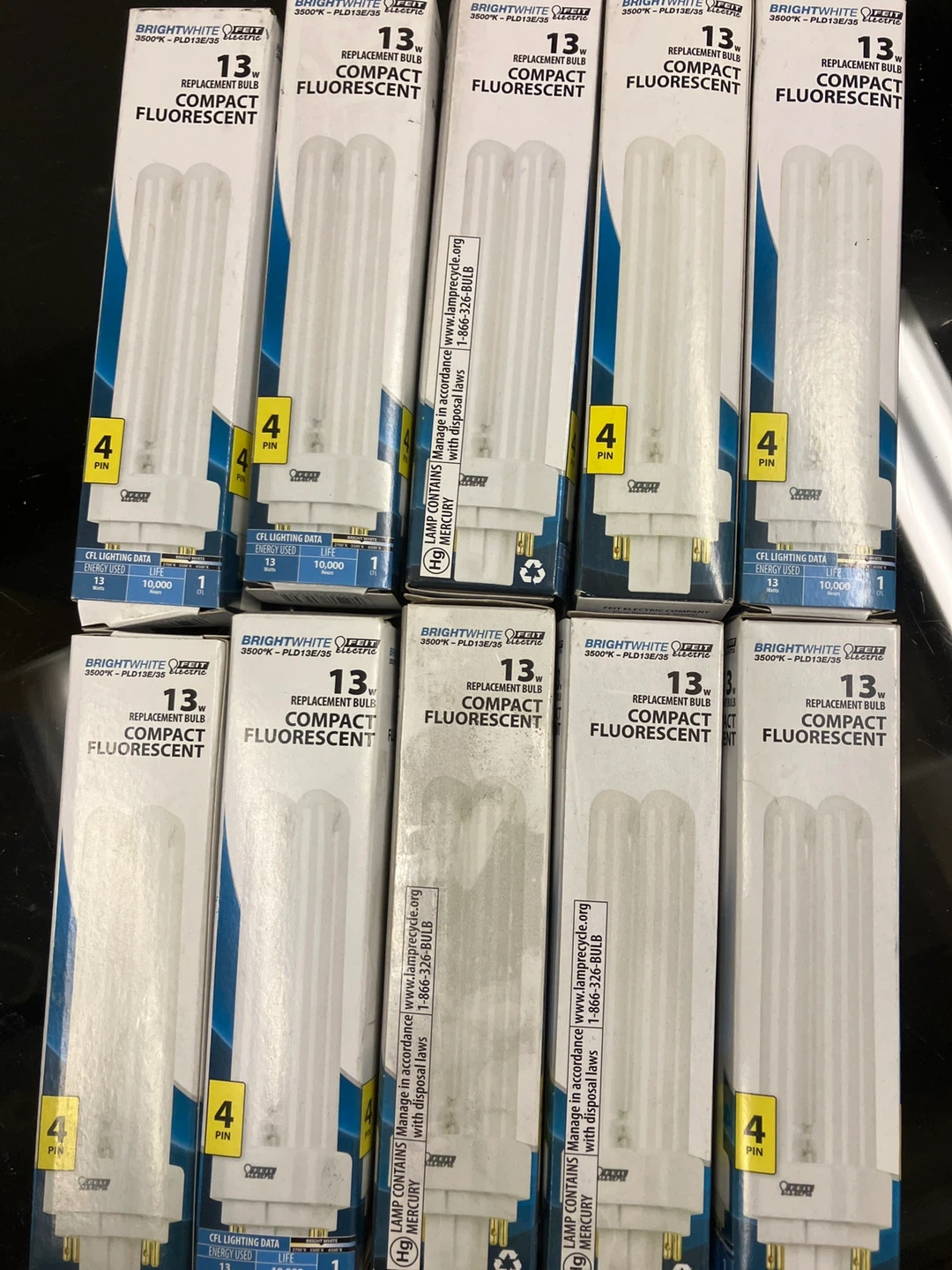 Selling a Feit Electric 13W compact fluorescent replacement bulb. It is a bright white 3500K with a 4-pin base. Great for replacing burnt-out bulbs! Cash and pick up only!