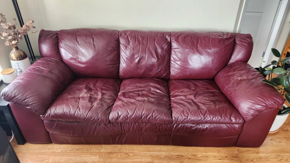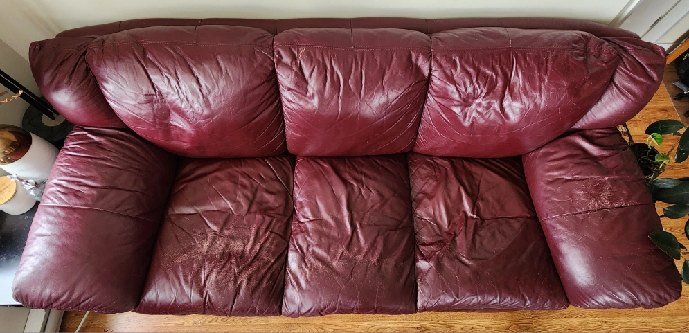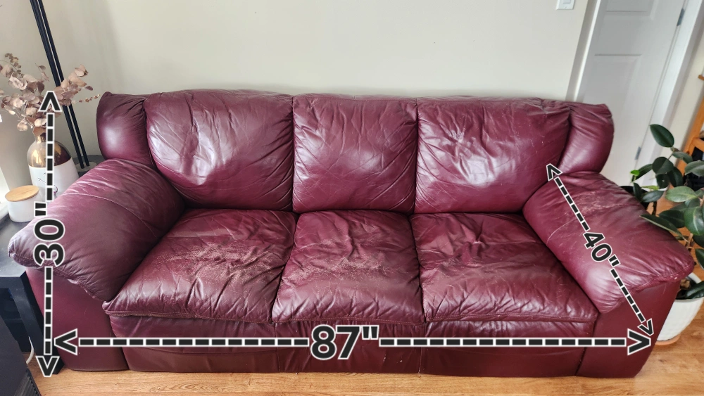 FREE Burgundy Leather Sofa (87" x 40" x 30")