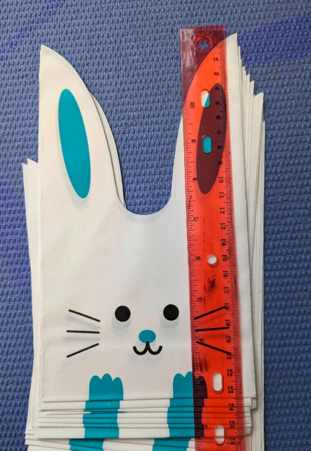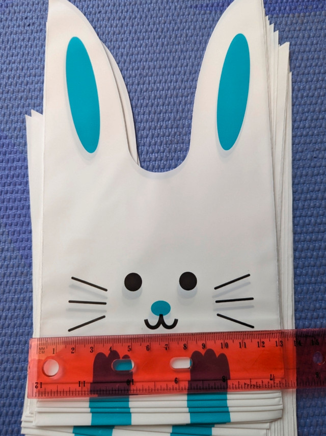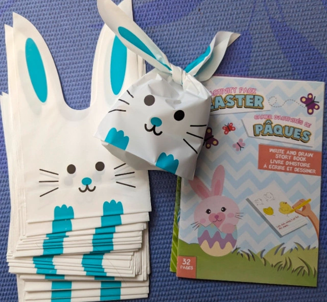 40 brand new bunny plastic gift bags, perfect for Easter eggs and little gifts. Give away the Easter coloring pages. $10 final, cash only. Pickup 10 Empress Ave.