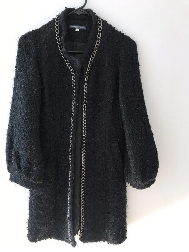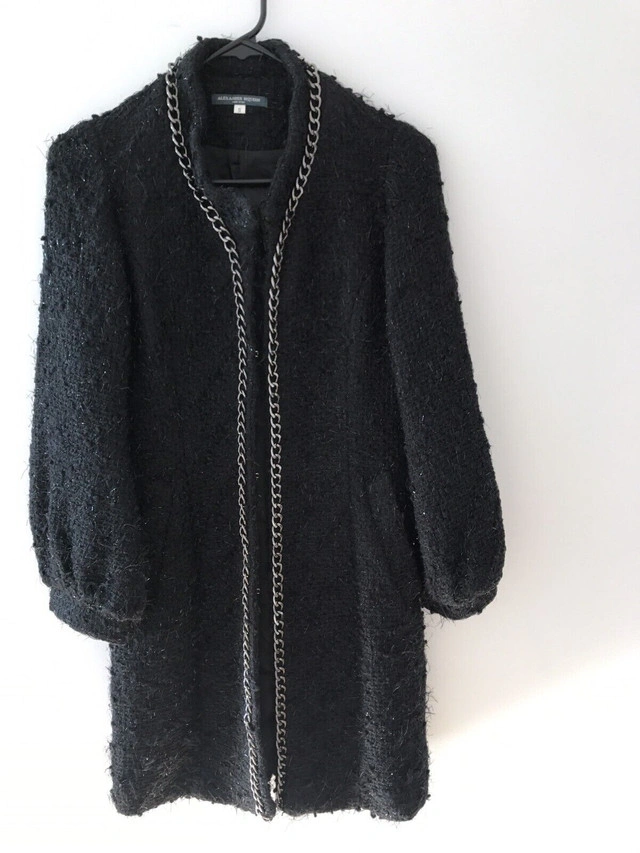 Alexander McQueen black coat with long golden chain, gently used, in great condition. Size S. Can book time for fitting near North York Centre. Cash only, price is FINAL. And yes it's available if the ad is still up.