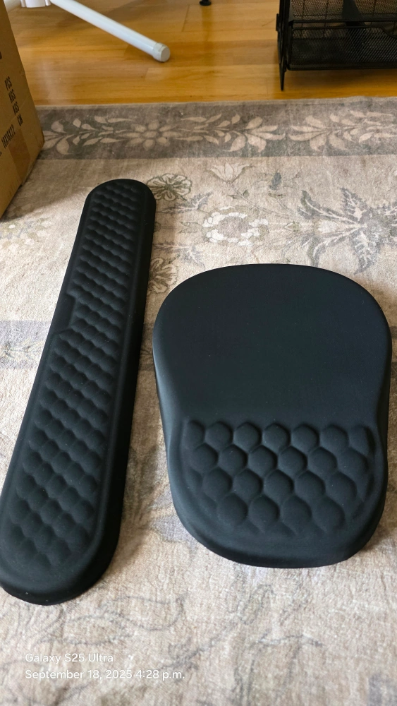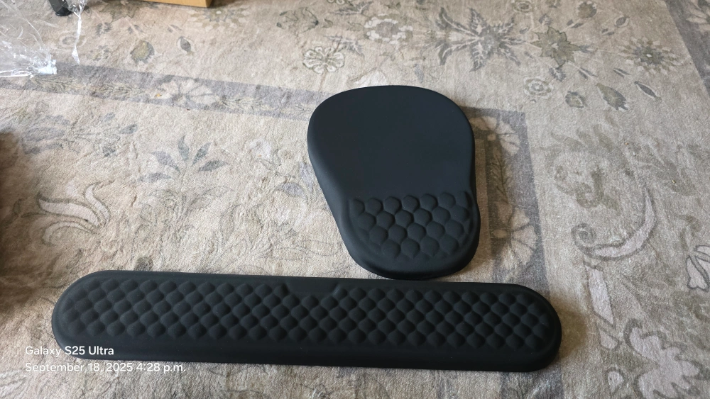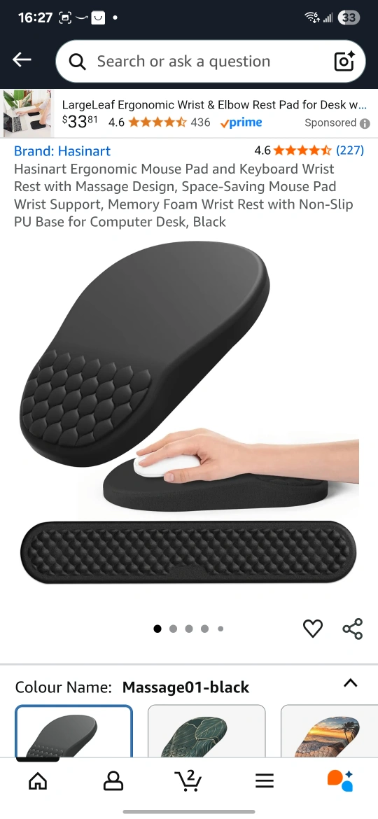 Selling a Hasinart ergonomic mouse pad and keyboard wrist rest. It features a massage design and space-saving design. The non-slip PU base is great for computer desks. It is black in colour and made of memory foam