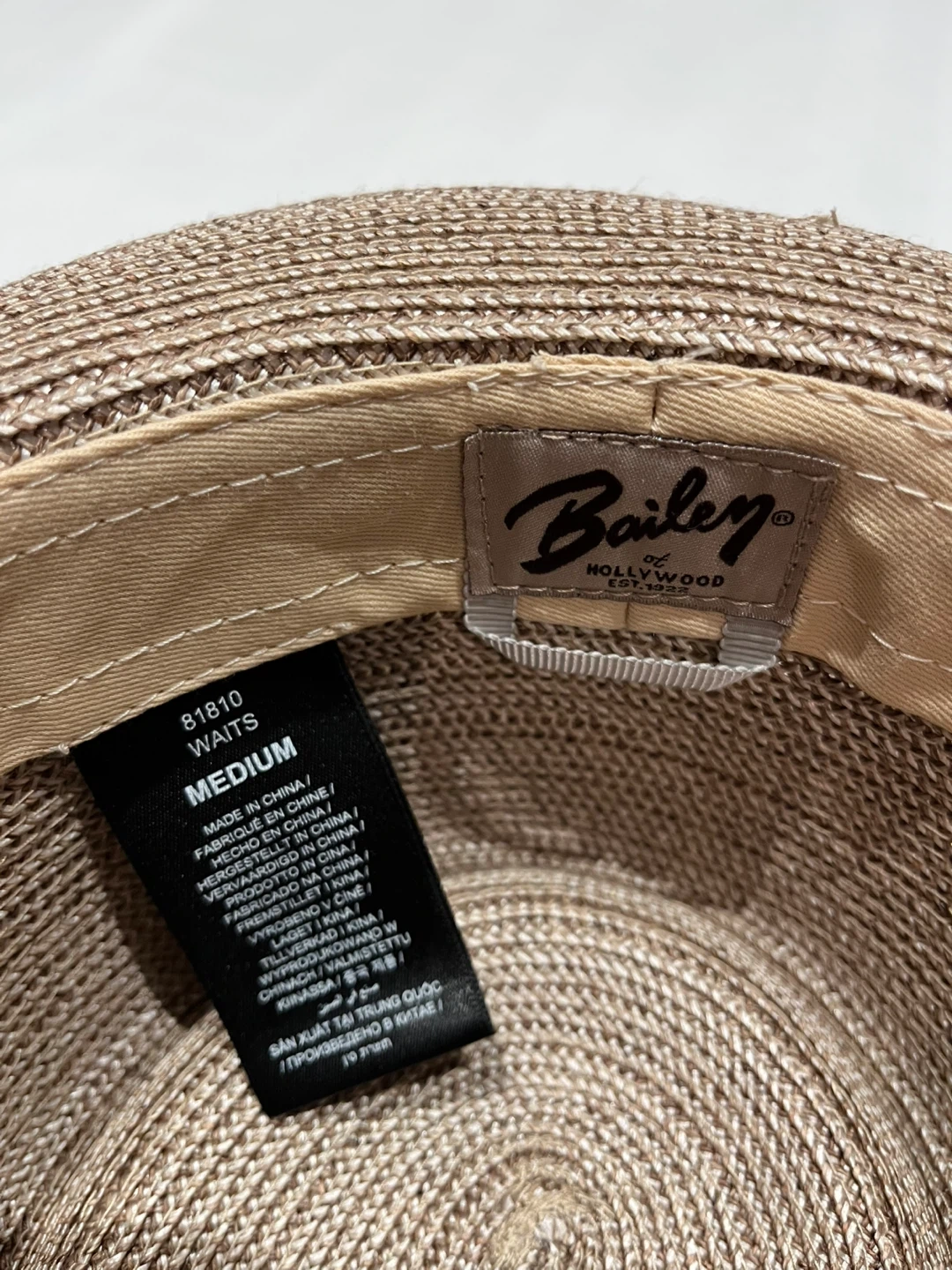 69Brand New w/o tags. Selling a Bailey of Hollywood Waits hat in size medium! It's a stylish and classic piece that's perfect for adding a touch of sophistication to any outfit. Pork Pie straw hat with Japanese grosgrain ribbon. Bailey colour “unbleached” (a nice light taupe). 4 1/2” telescope crown, 1 5/8” snap brim. Light and comfortable. Retails for $125.