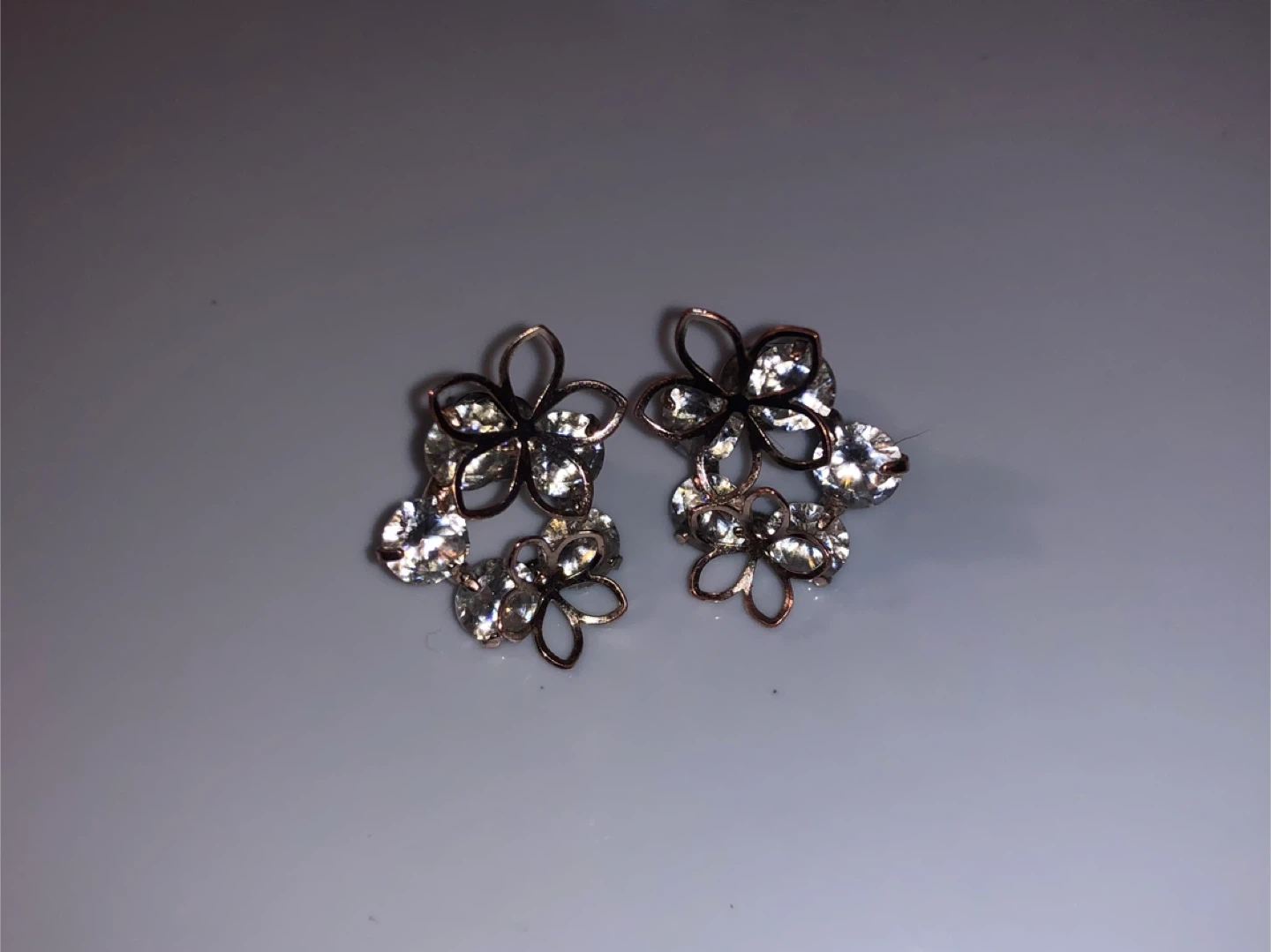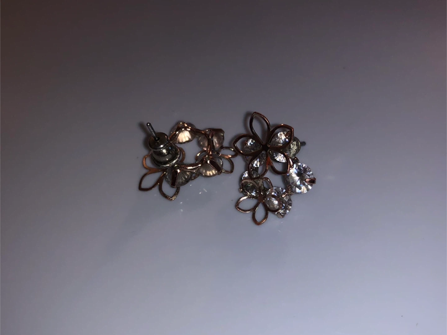 Selling a pair of gold flower earrings. They have a cute floral design with sparkling accents. Perfect for adding a touch of elegance to any outfit! In great condition, used. Let me know if interested in purchasing from me thx 🙏💕 Located near Queen and Sherbourne (exact address will be given once a meetup is decided) 🙌 Check out my listings for more deals! 🤩 🔥 Bundle items for a discounted price (excluding items $5 and under)🔥 ❣️Serious Inquiries Only❣️