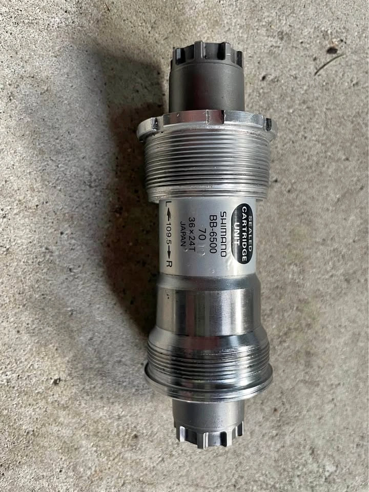 42Selling a Shimano bottom bracket in like new condition. Installed once, not ridden, swapped for a Dura Ace BB. This is a BB-6500 with octalink first gen spline. Please note this is Italian threaded so tightens clockwise on the drive side. This would be perfect for a vintage Italian road bike frame. If you are building up an old Italian road bike this is the needle in the haystack you have been looking for.