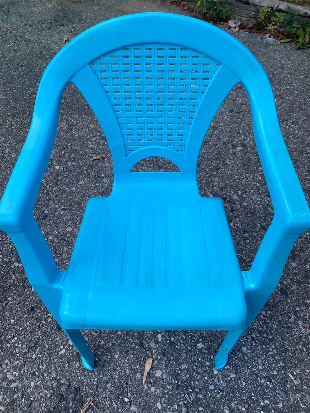 Here's a sturdy blue plastic armchair for kids! π₯ Perfect for indoor or outdoor use! It's in great shape, lightweight and ready for a new home.